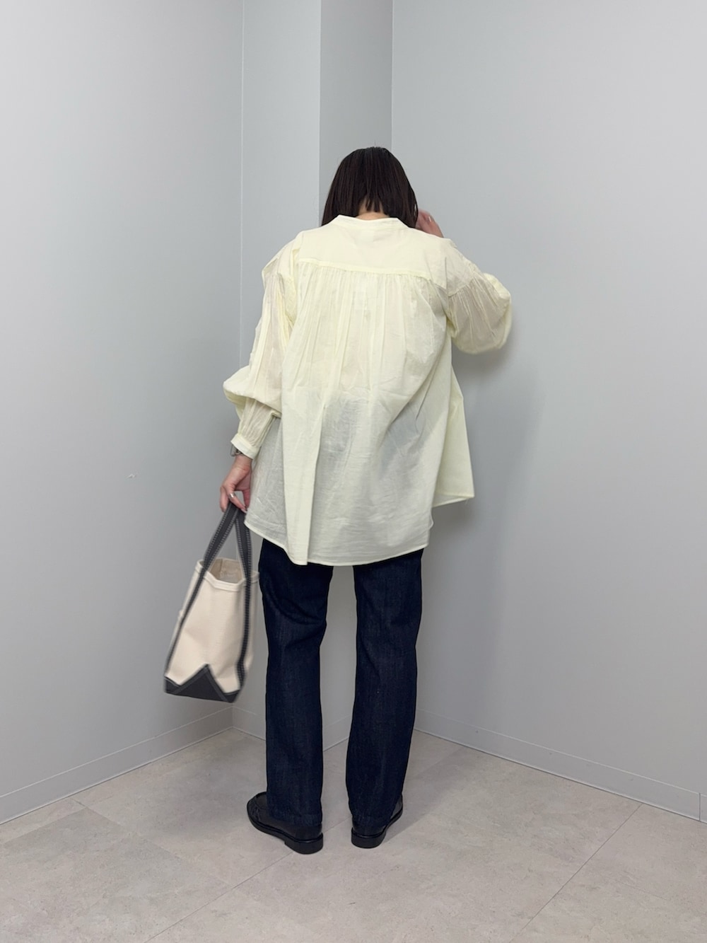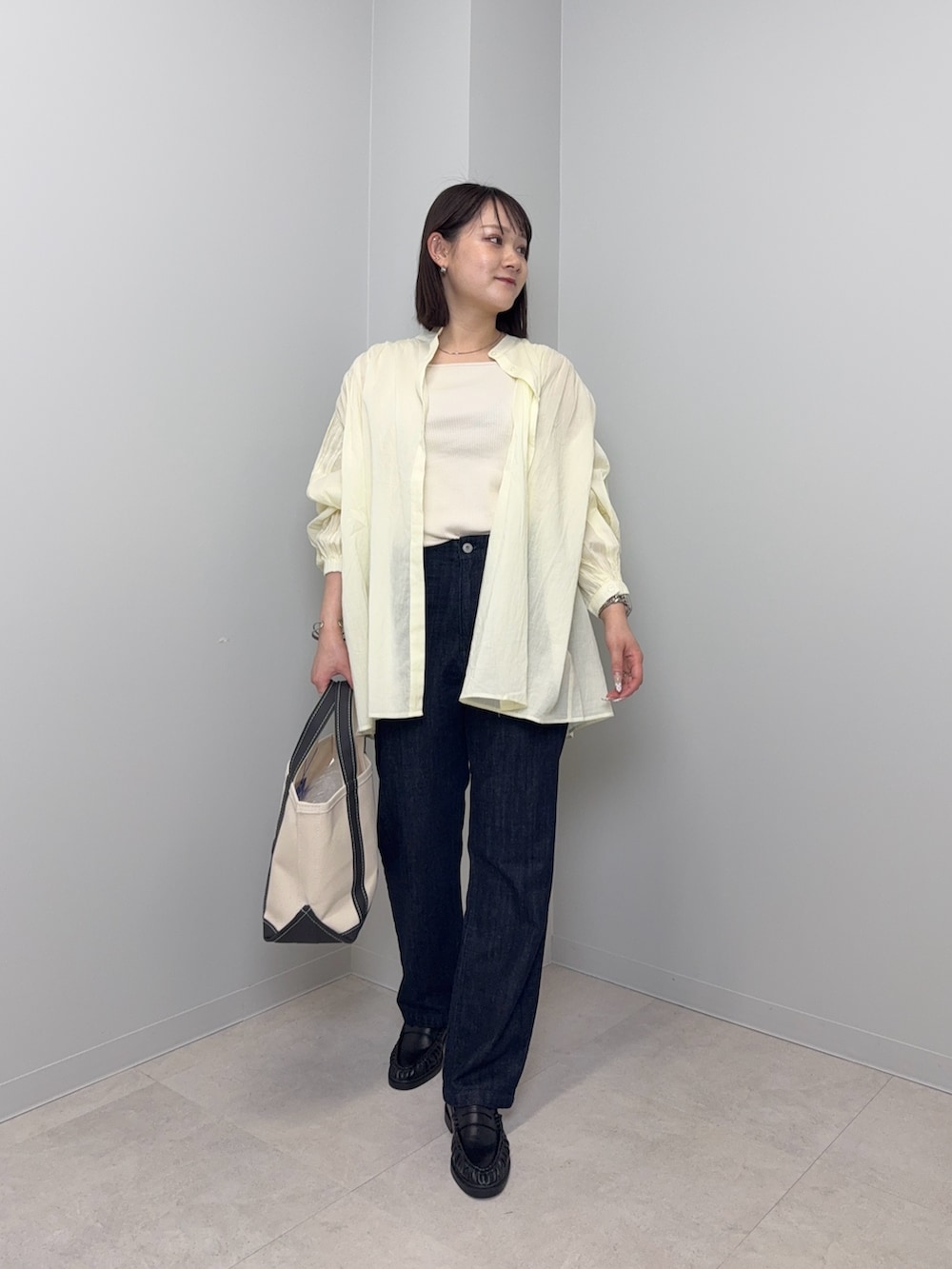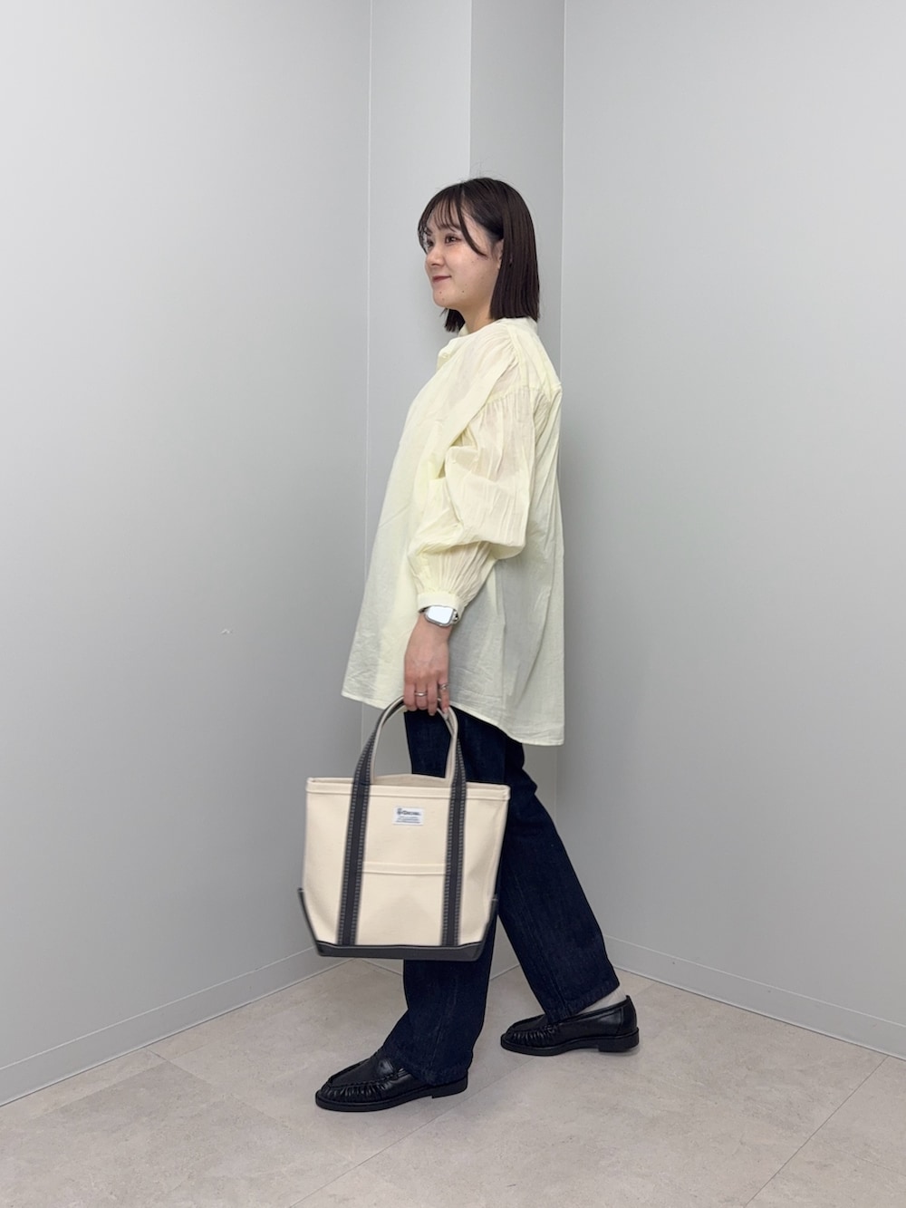私は普段柔らかいカラーの服をなかなか着ないですが、デニムと小物を暗めのカラーにする事で抵抗感なく着れました!イエローがより映えて可愛い!!