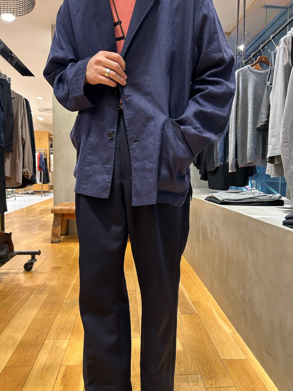 新作LINEN SHIRTS JACKETを使ったコーディネートです。