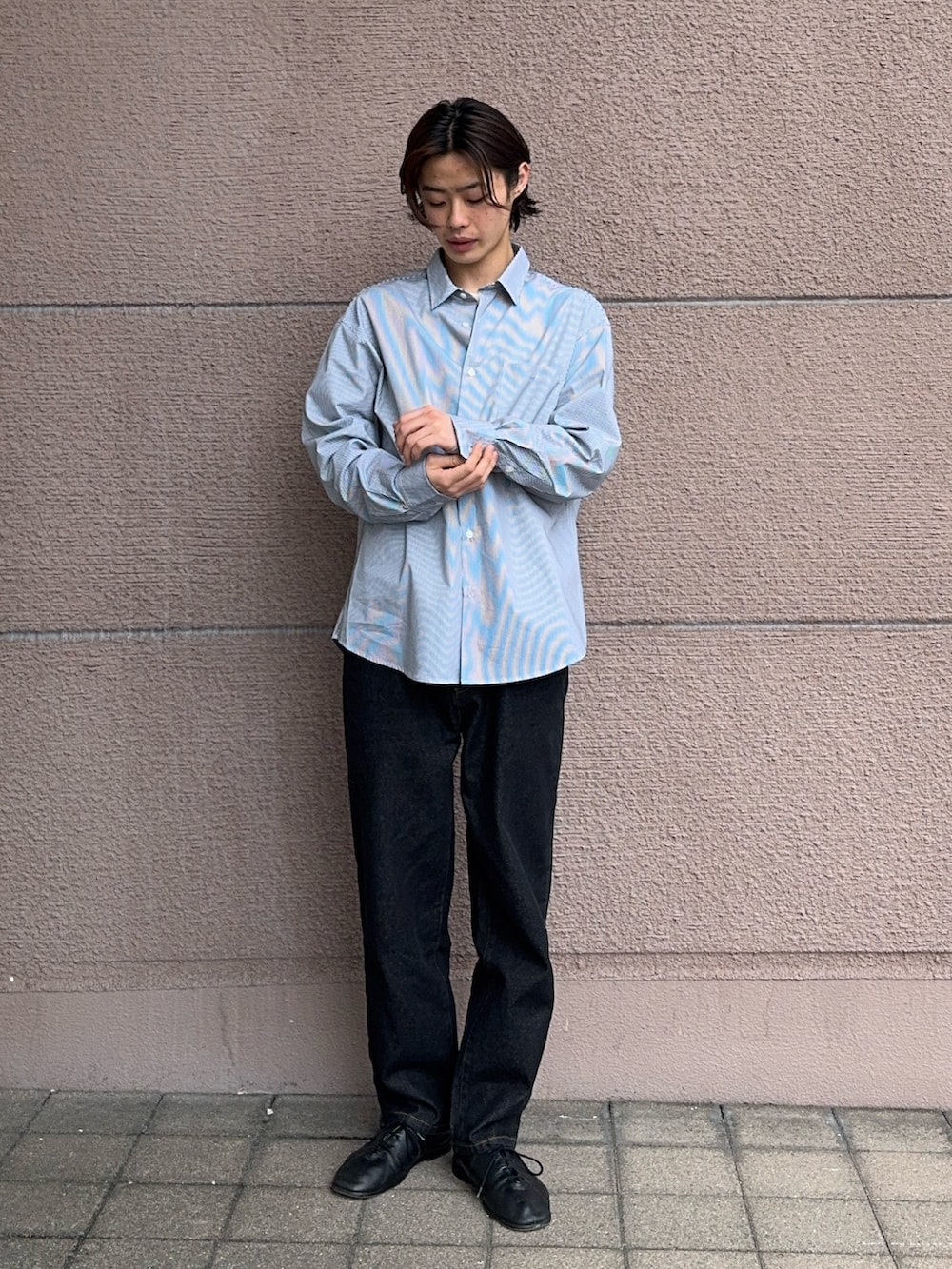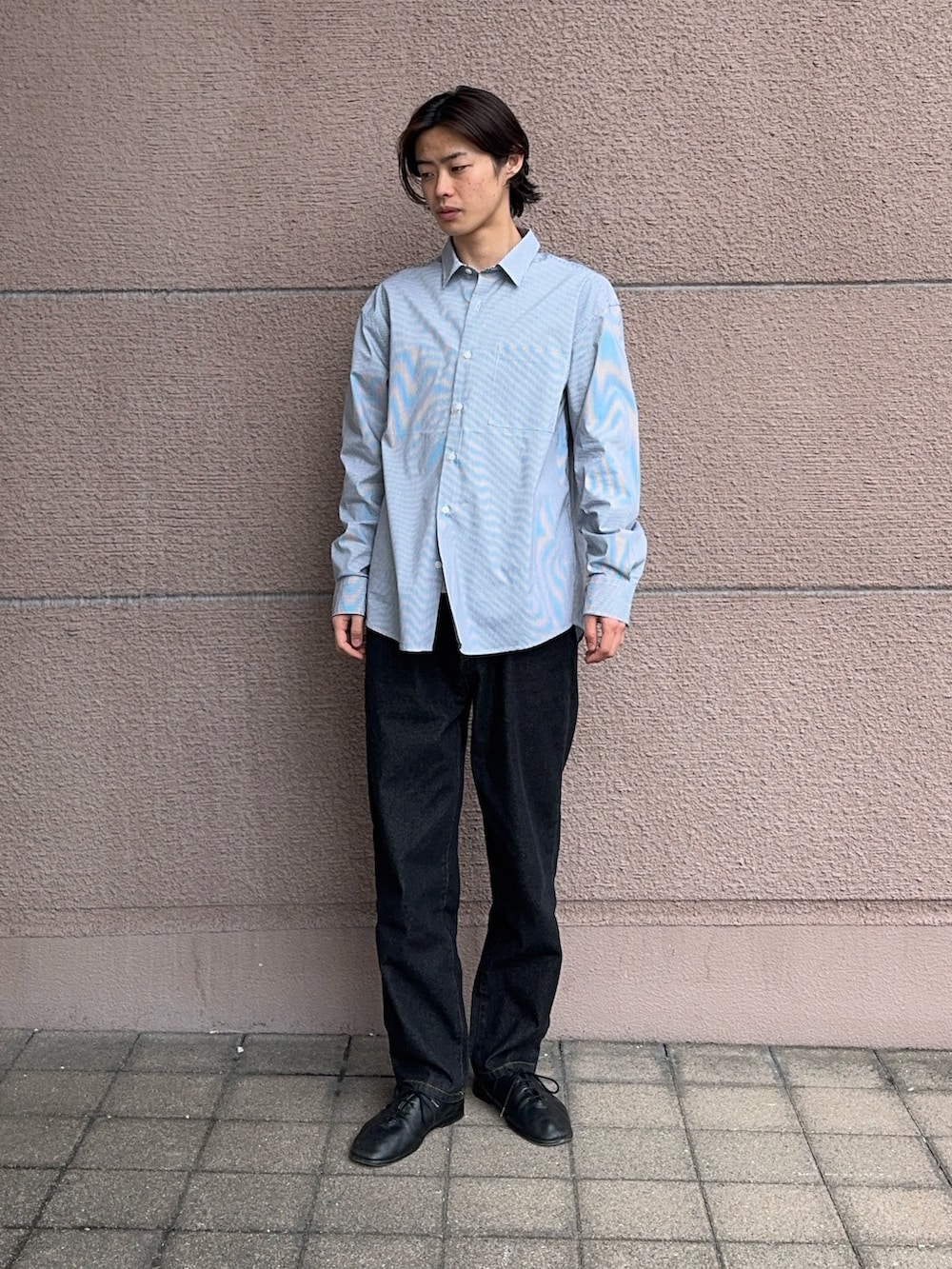 今回のコーディネートは白黒のストライプのシャツにデニムパンツを合わせました!シャツはこれからの季節たくさん着ていただけます!羽織でもインナーとしても使えるので長く使っていただけます!デニムパンツはストレートのシルエットでシンプルなデニムパンツです!是非参考にしてください!