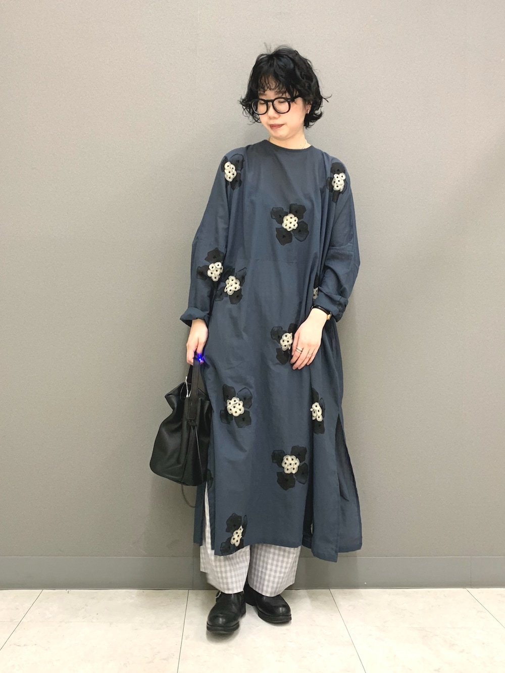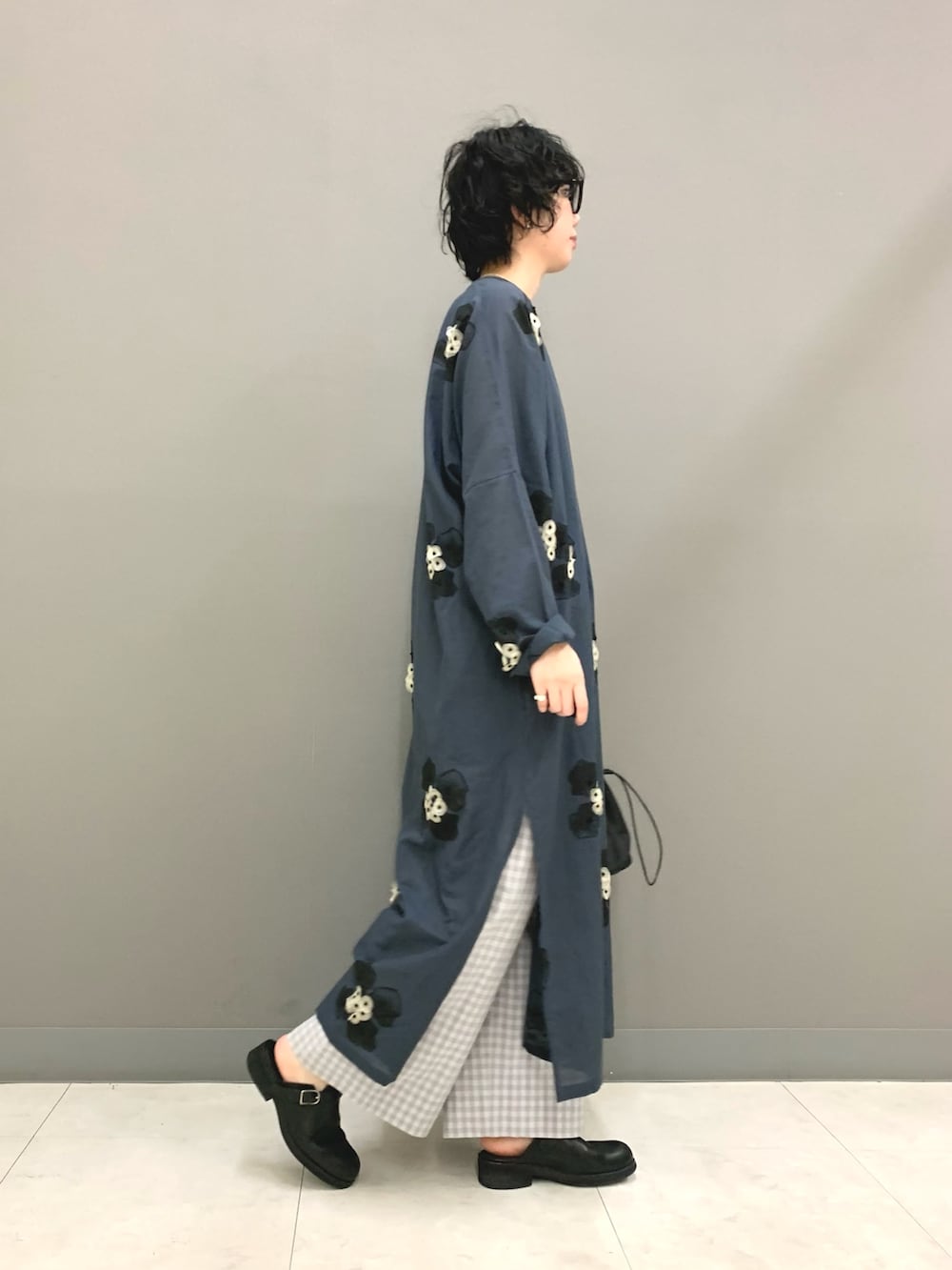 ギンガムチェックのワイドパンツです。ハリのある素材感で体のラインが気になりません。丈が少し長めなので高身長の方にもおすすめです。