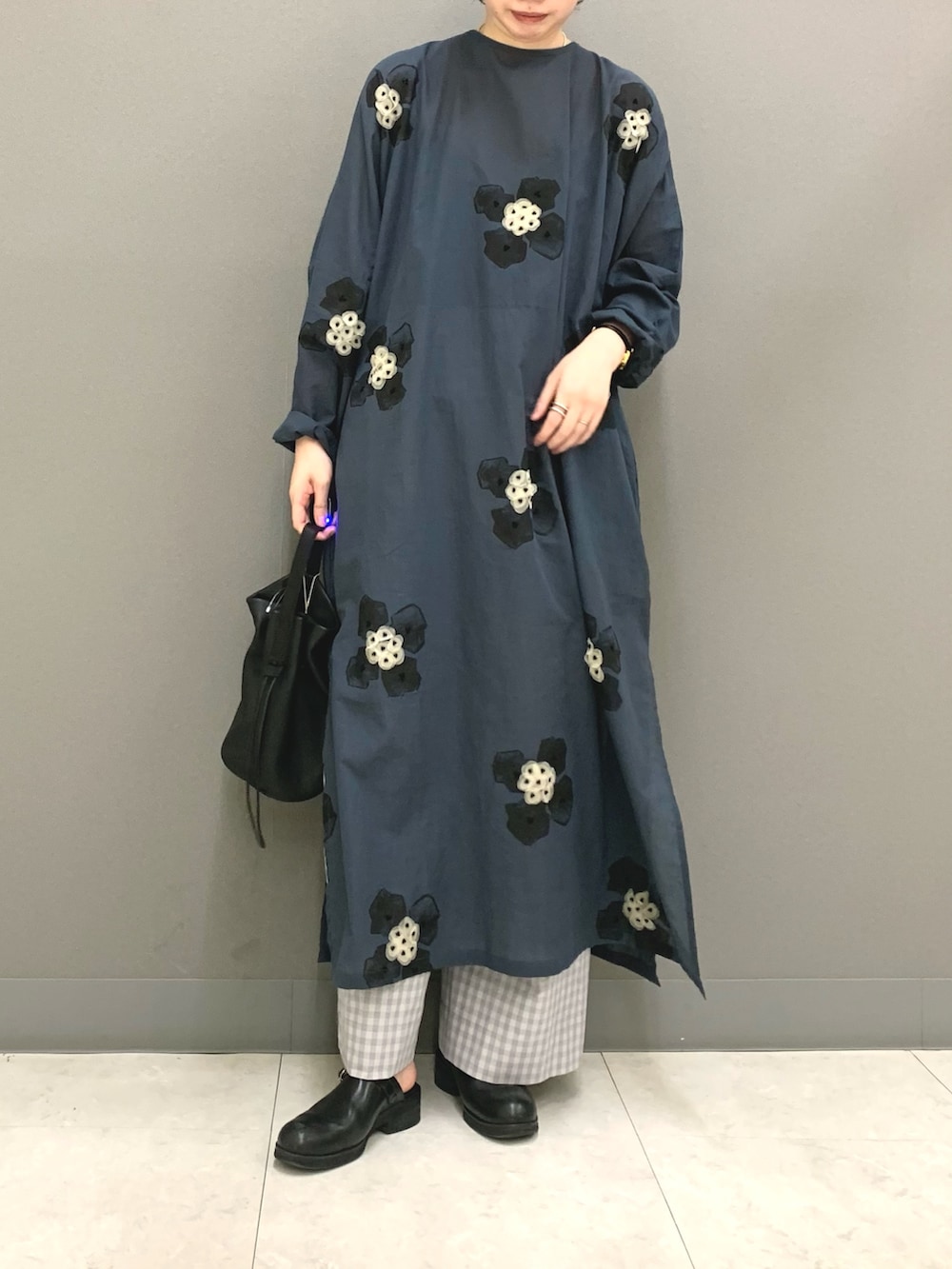 ブノンの花柄ワンピース。プリントとシルク生地、ビーズで織りなすお花の表現が素敵です。とても軽く柔らかい生地感で夏場も涼しくお召しいただけます。