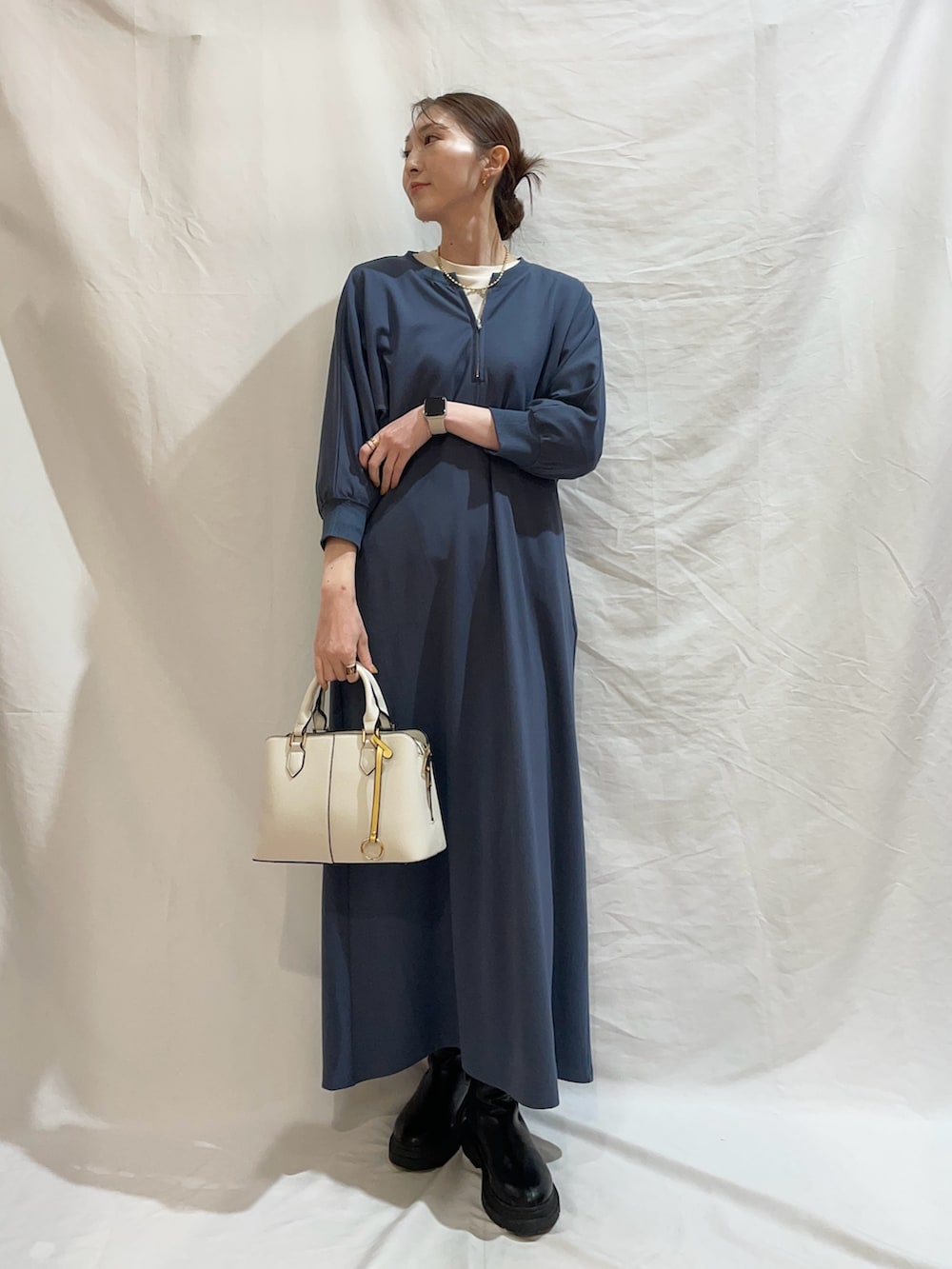 ハーフジップドルマンワンピース