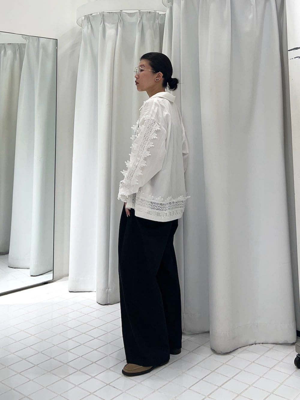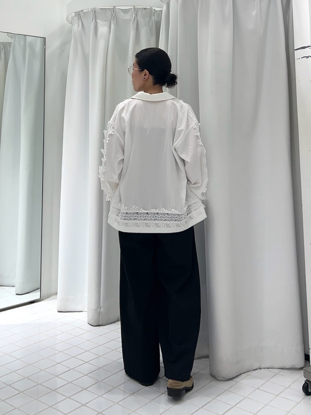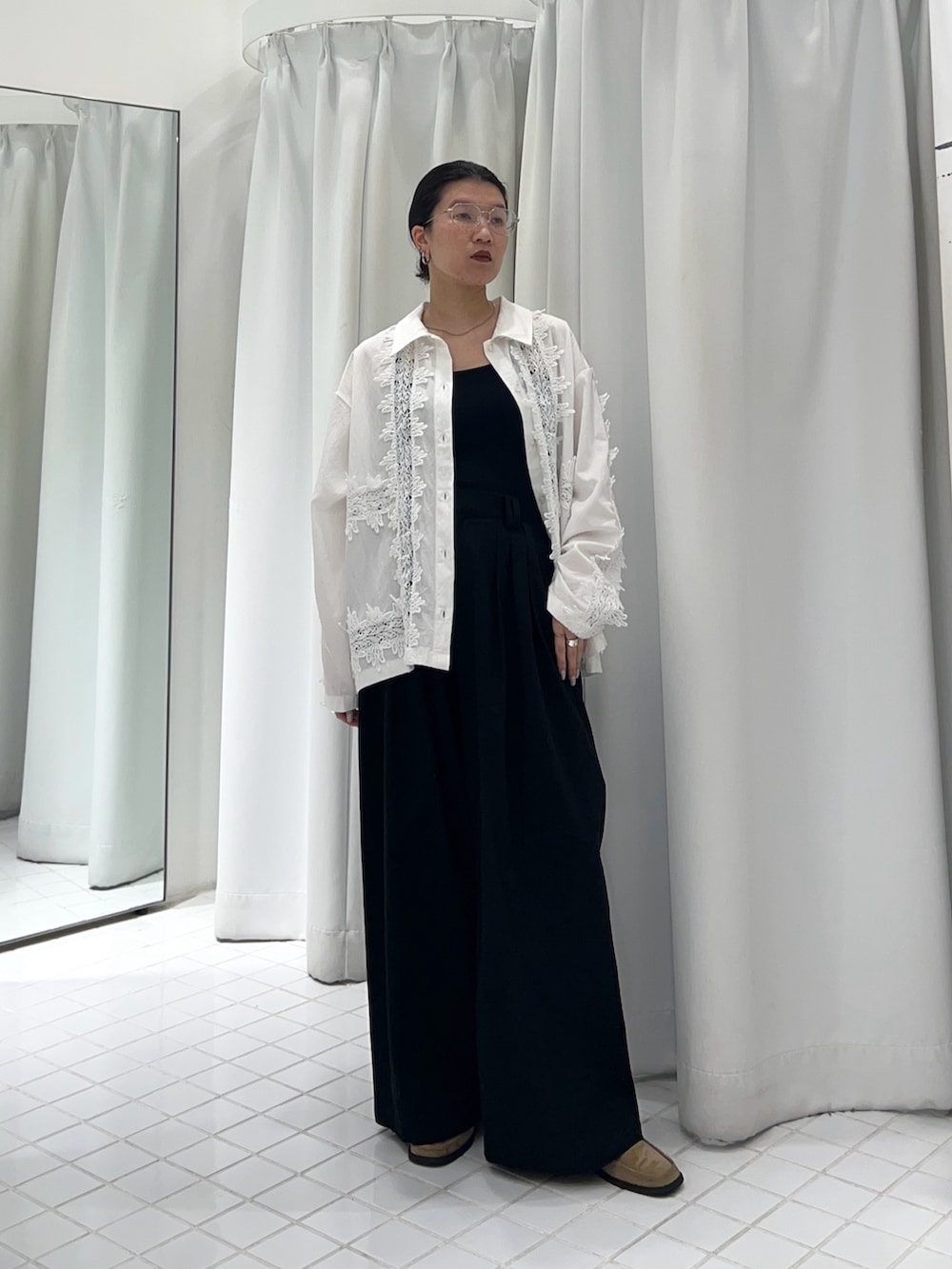 ウエスト部分にタックが入っていて腰回りがスッキリ見えるのがポイント◎