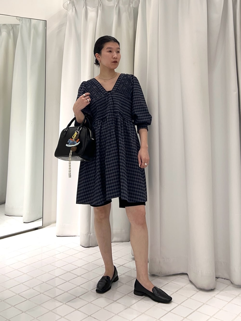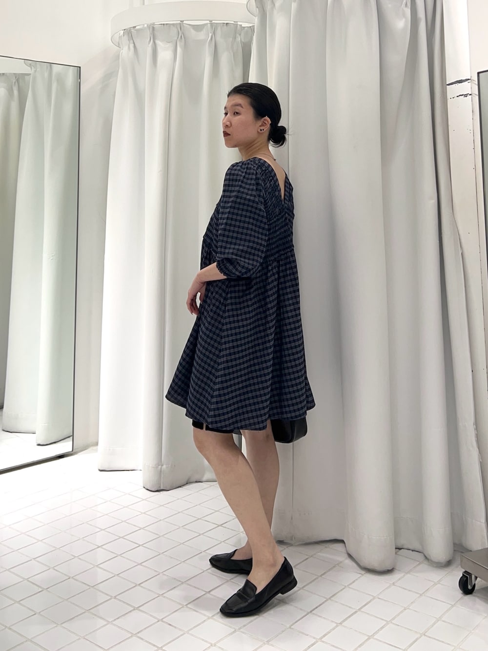 チェック柄が目を引くミニワンピース