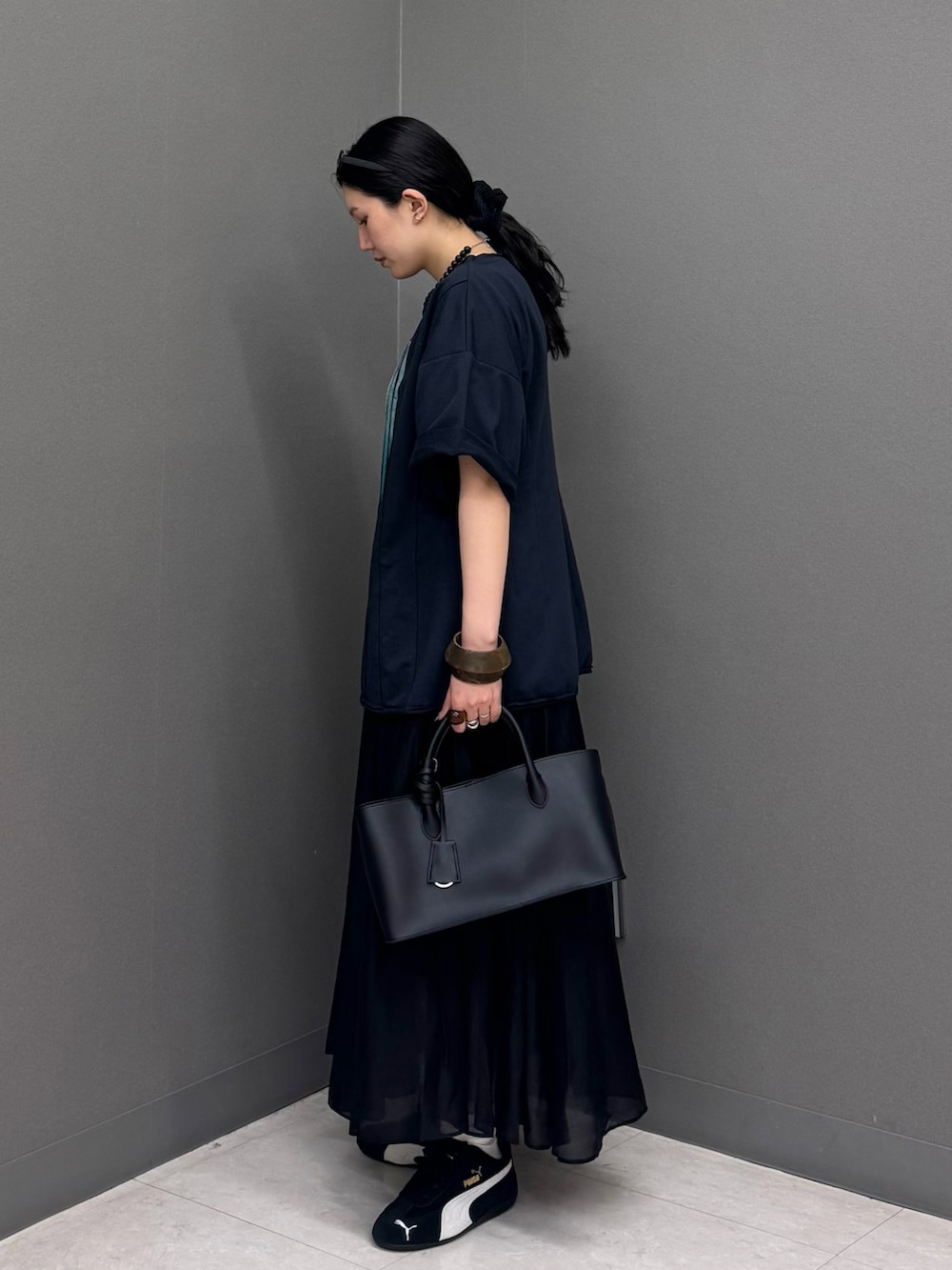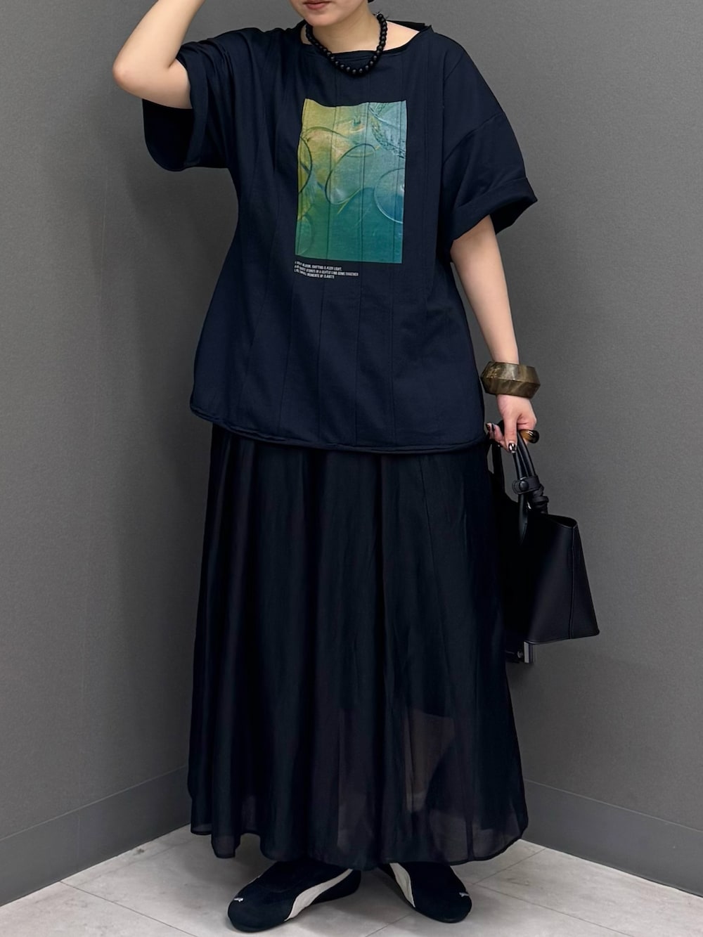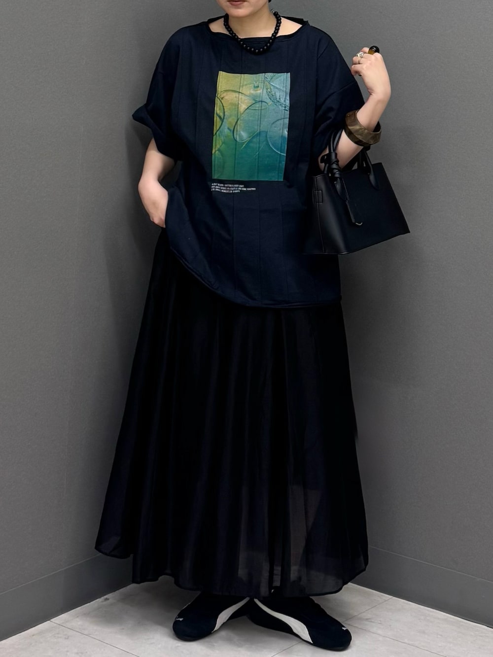 今回は黒いスカートを合わせてダークトーンコーデに
