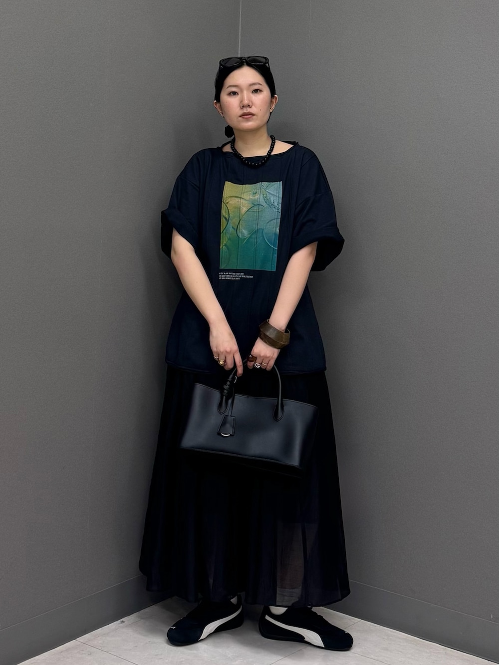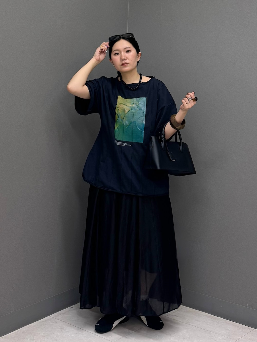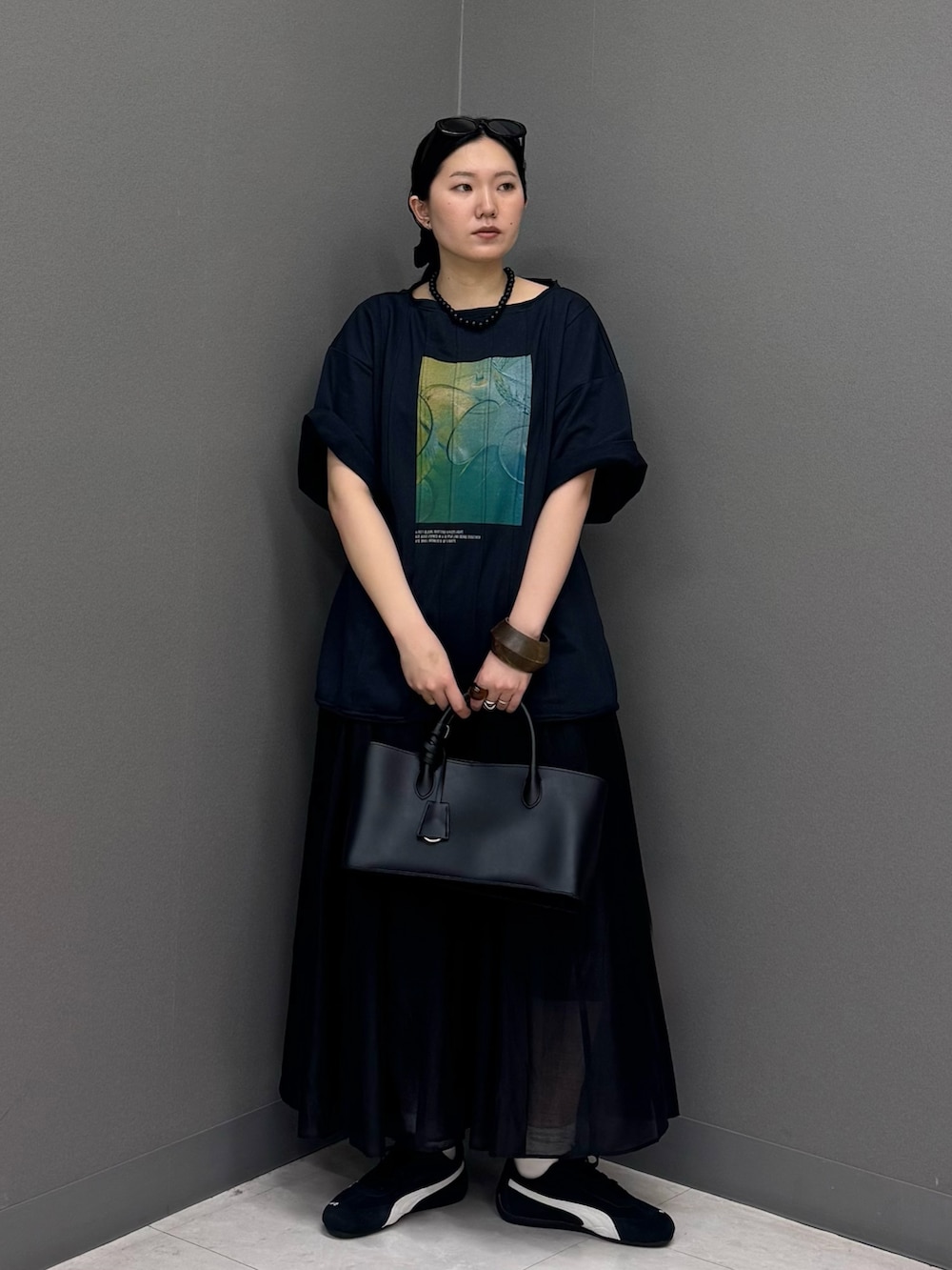 今回は黒いスカートを合わせてダークトーンコーデに