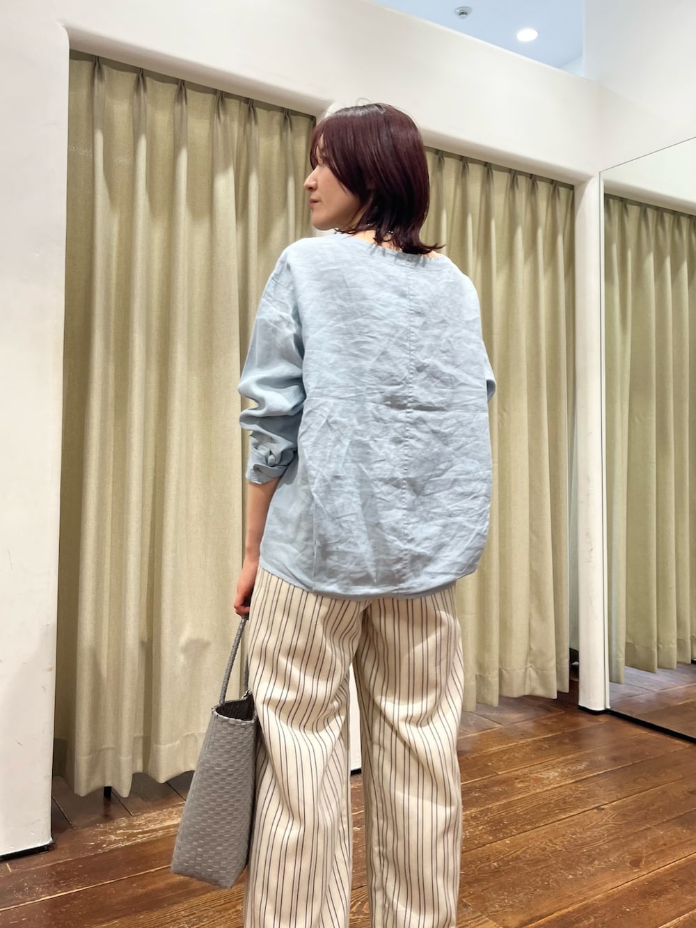 カラーも落ち着いたブルーなので肌馴染みが良く、普段色物を着ない方でもチャレンジしやすいカラーとなっています。