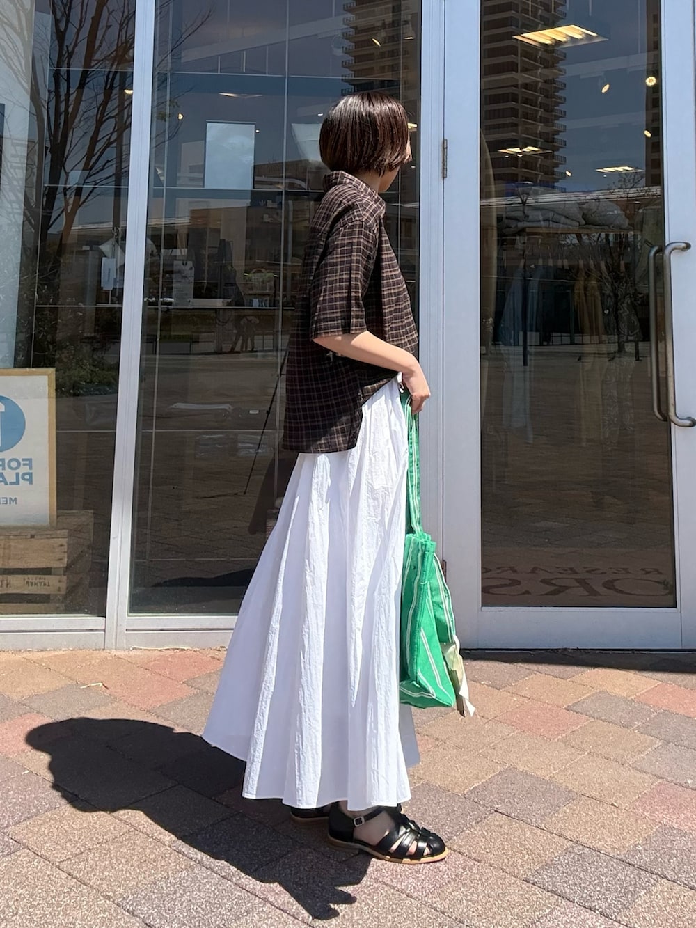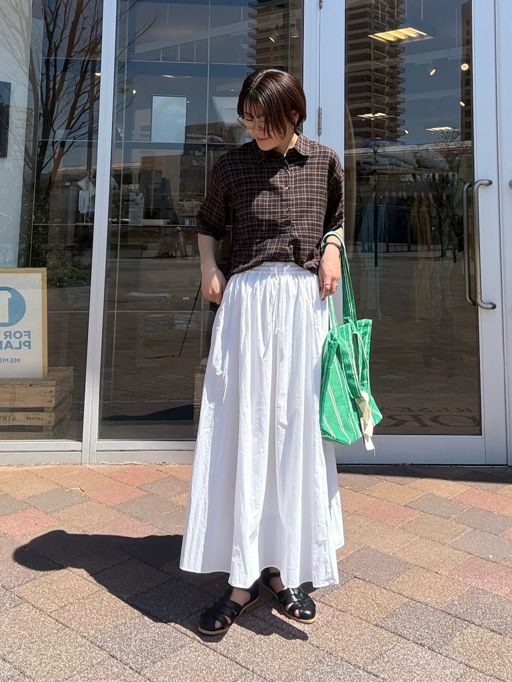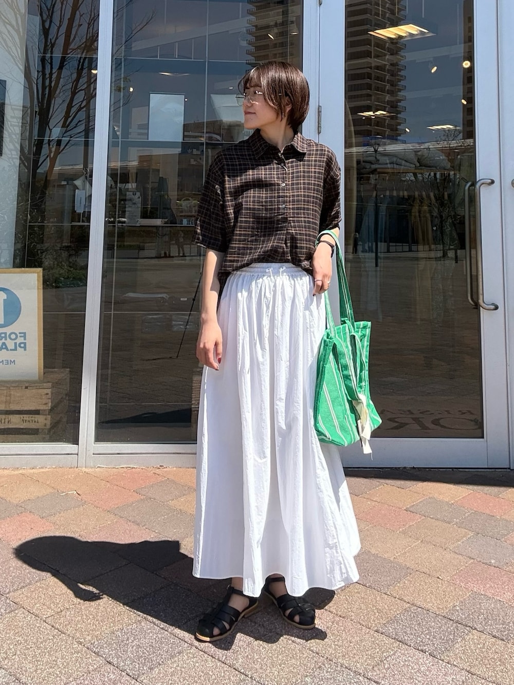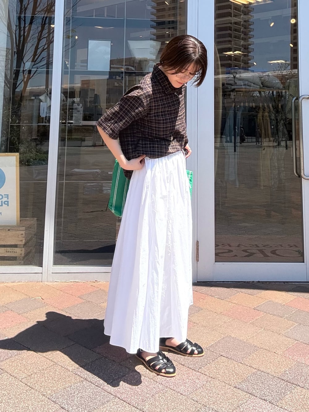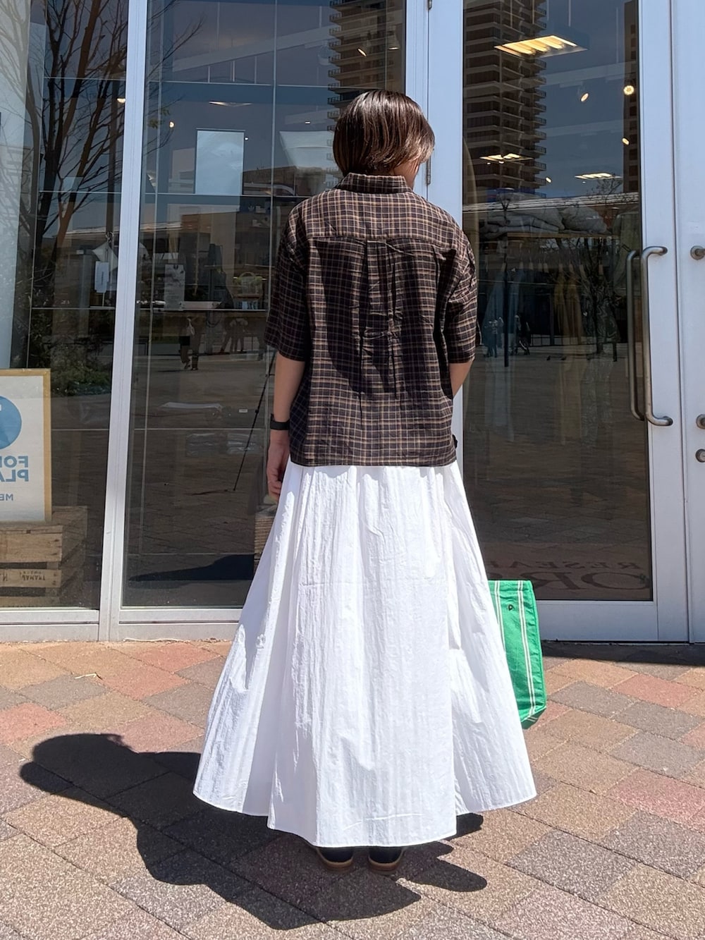落ち着いたチェック柄がコーデに自然なアクセントを加えつつ、やさしい印象に仕上げてくれます。
