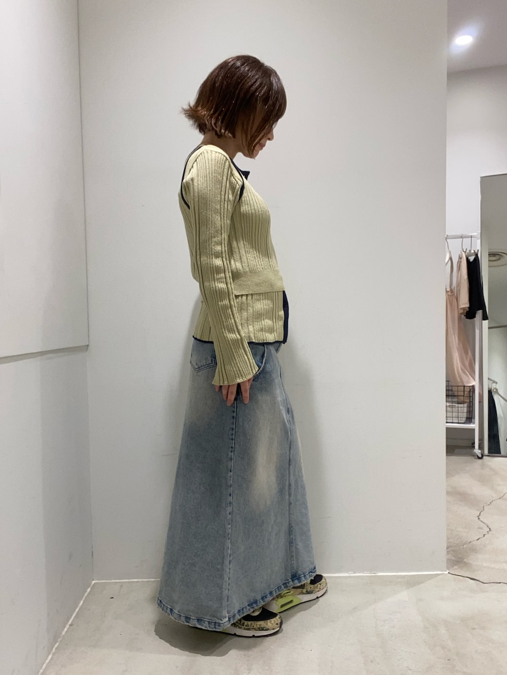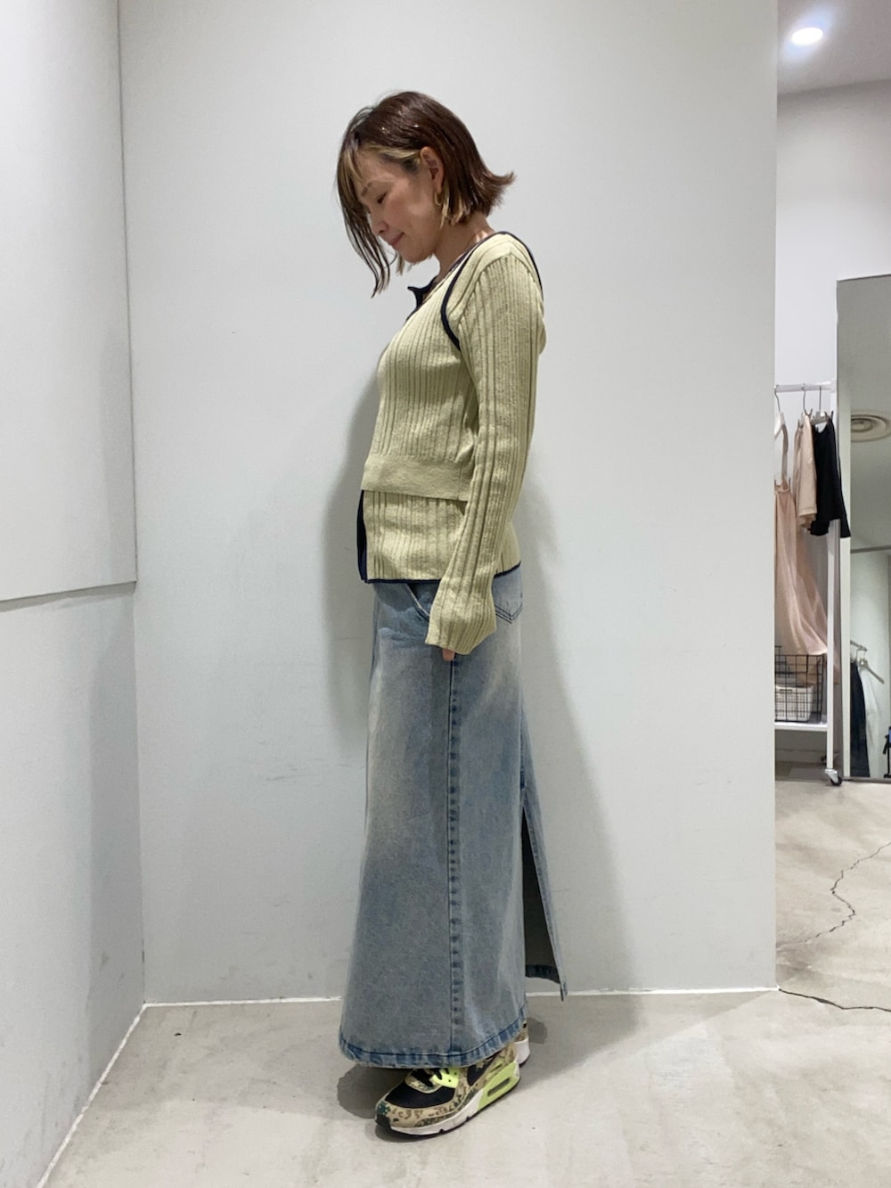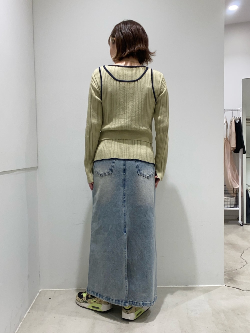 ニットは、カーディガンの上にビスチェとして着たり、アンサンブルカーディガンとしても着られます!
