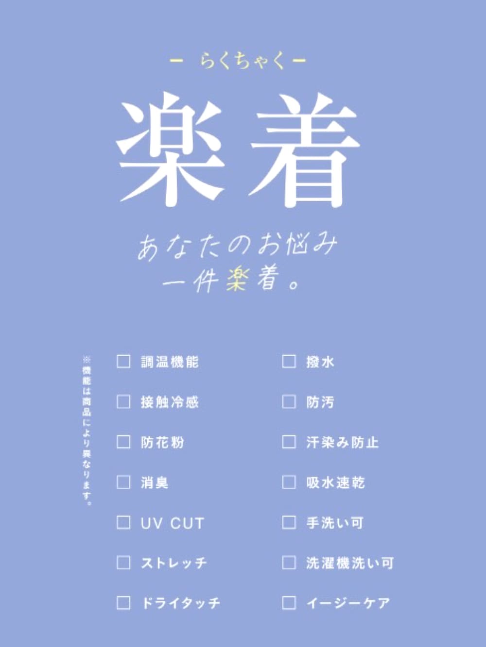 UVカット、吸水速乾、イージーケアと