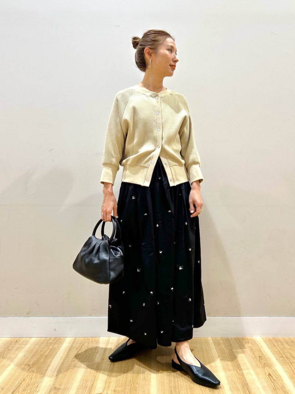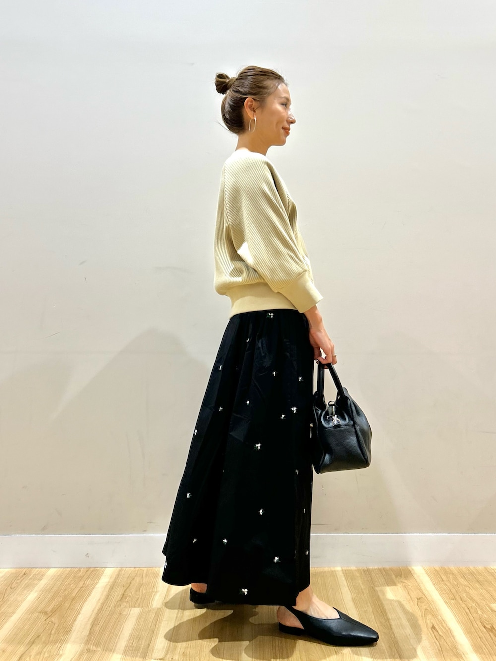 花柄刺繍がポイントのフレアスカートは