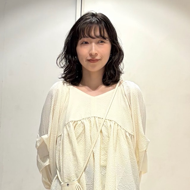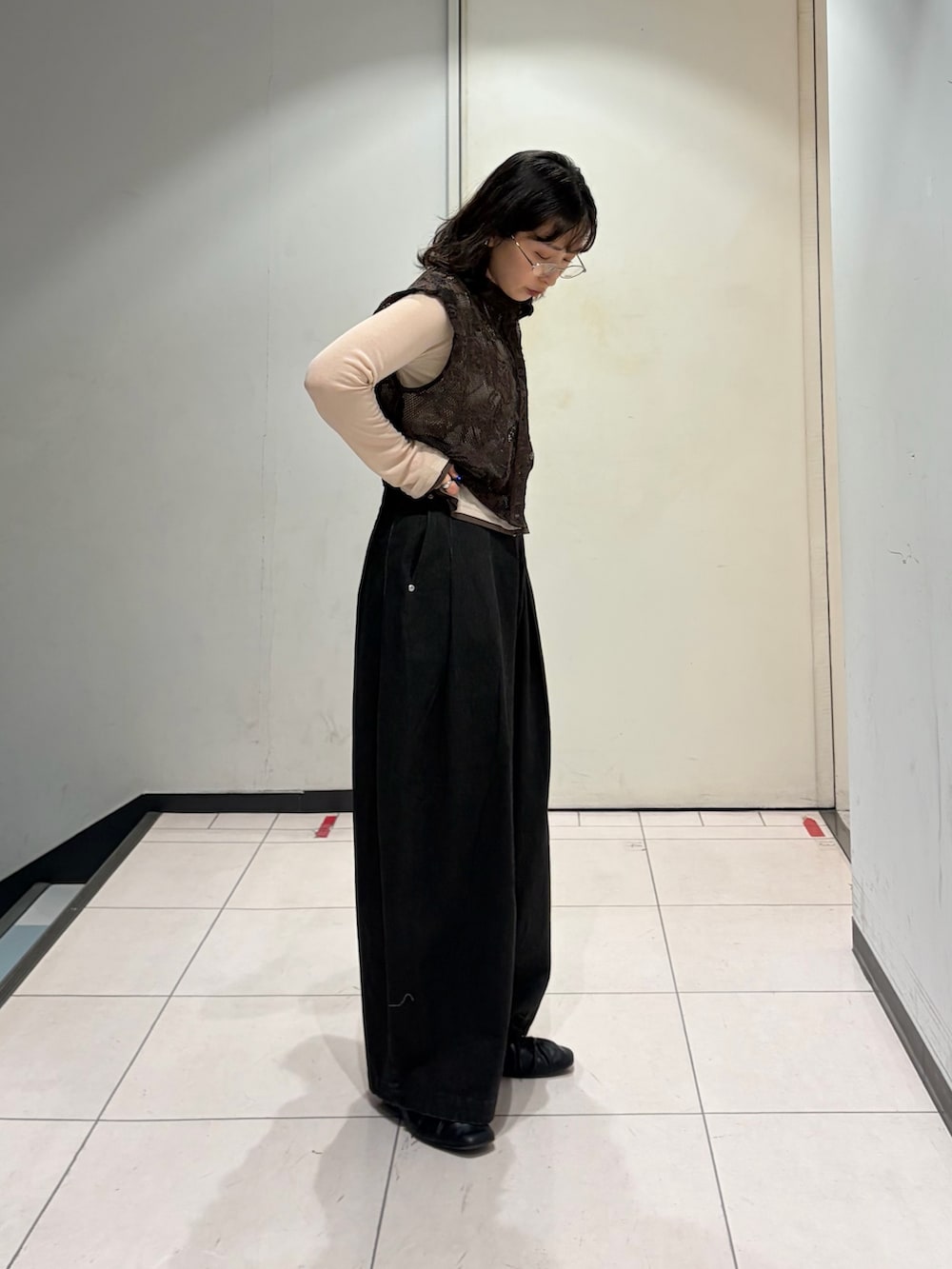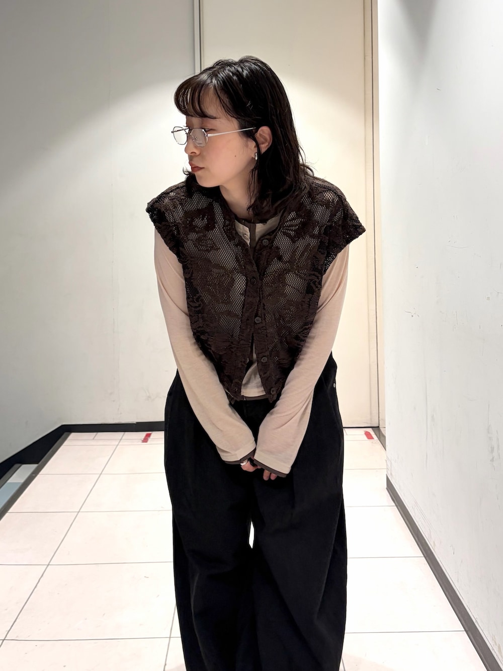 ブラウンのレースブラウスと合わせてワントーンコーデです。