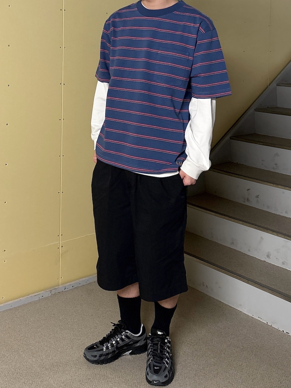パンツはF&Sのクリンクルワイドショーツで丈感は少し長めになっていてストリート感が強めのアイテムになっています!