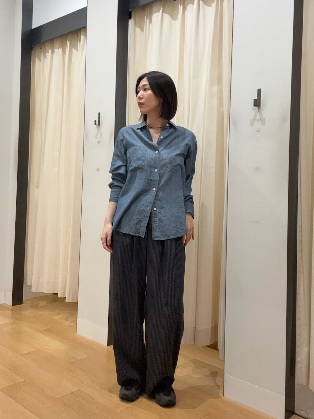 デニムシャツは素材が硬いイメージがあって苦手意識あったんだけど、これは少しシアーだから柔らかくて着やすい!