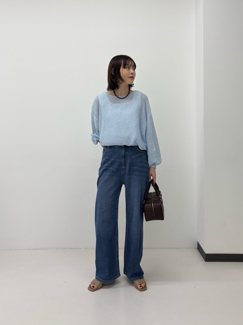シルエットがスッキリする綿麻デニムとシアー感あるトップスで春コーデ🌸