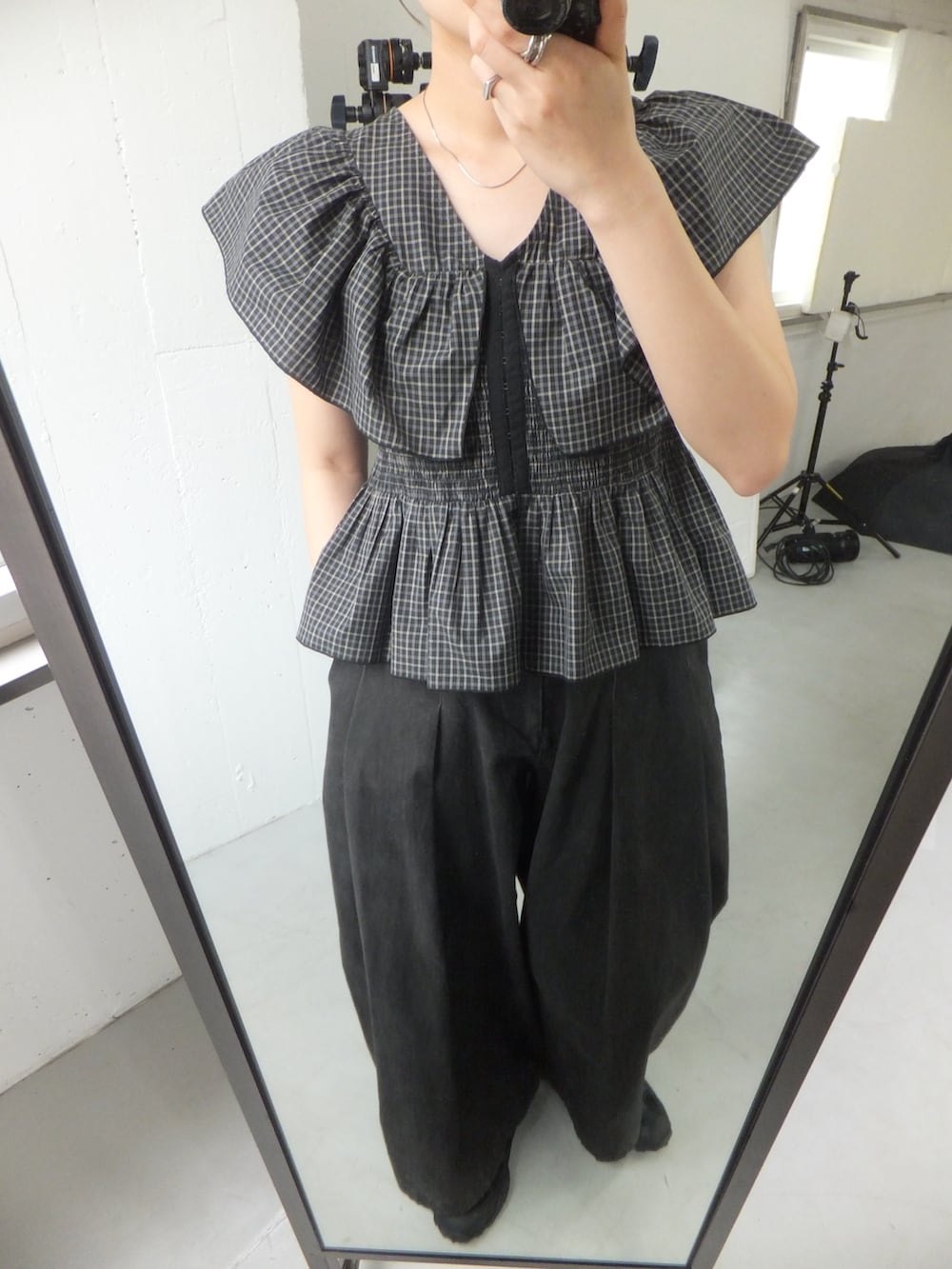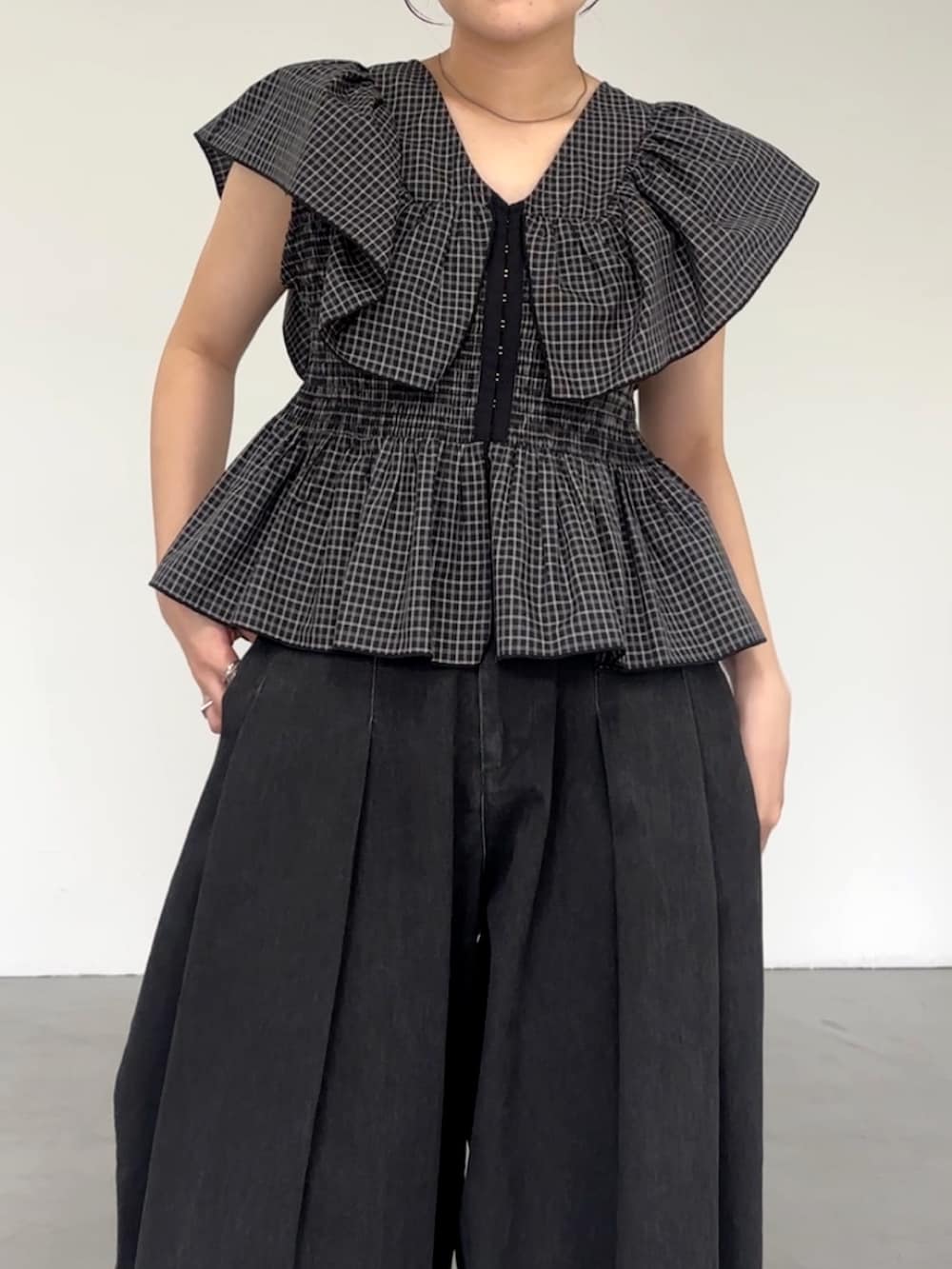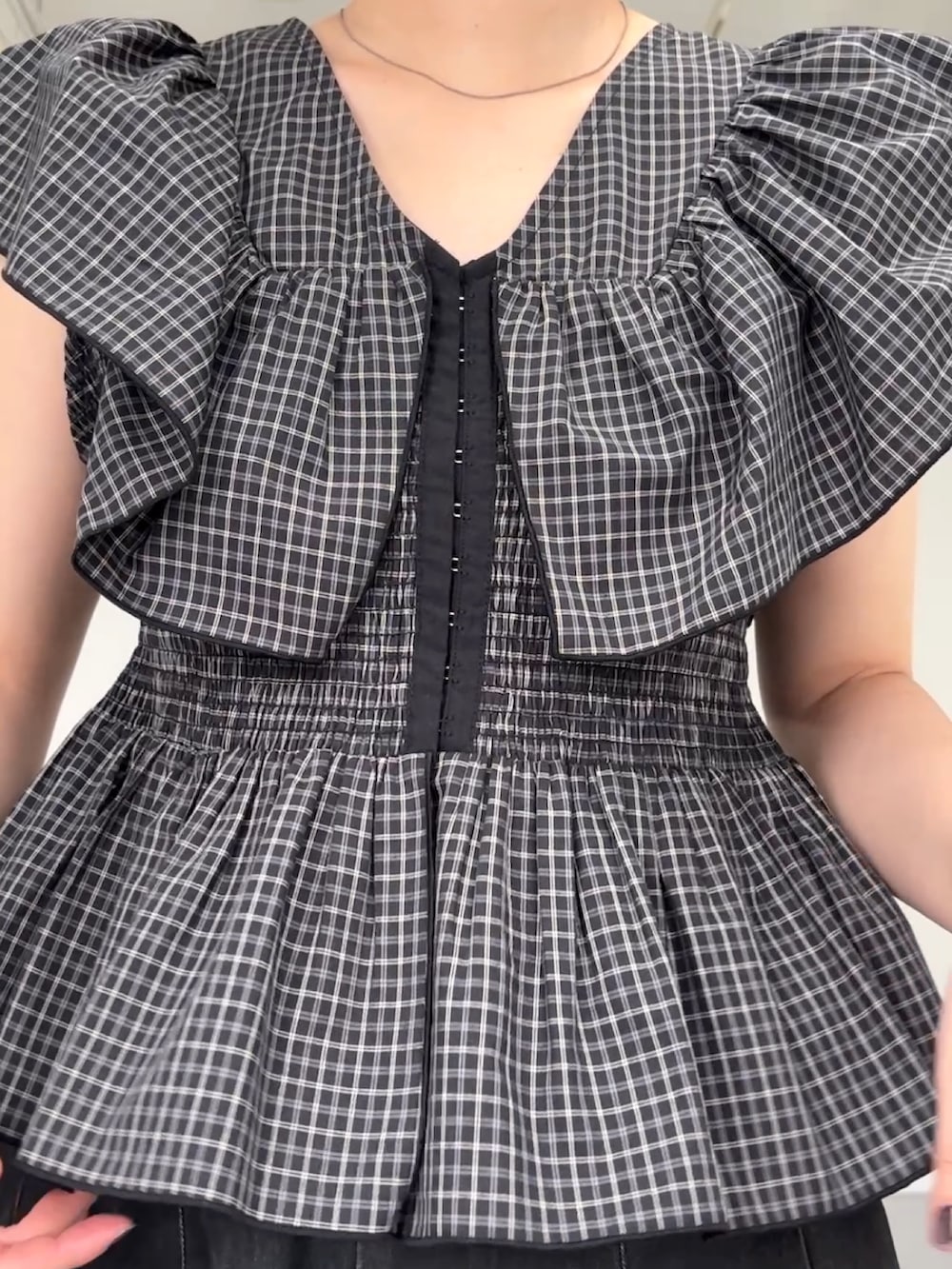 フロントホックチェックフリルブラウス