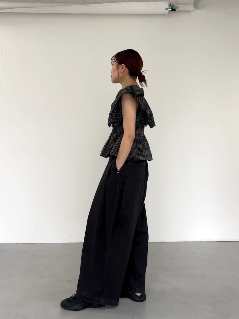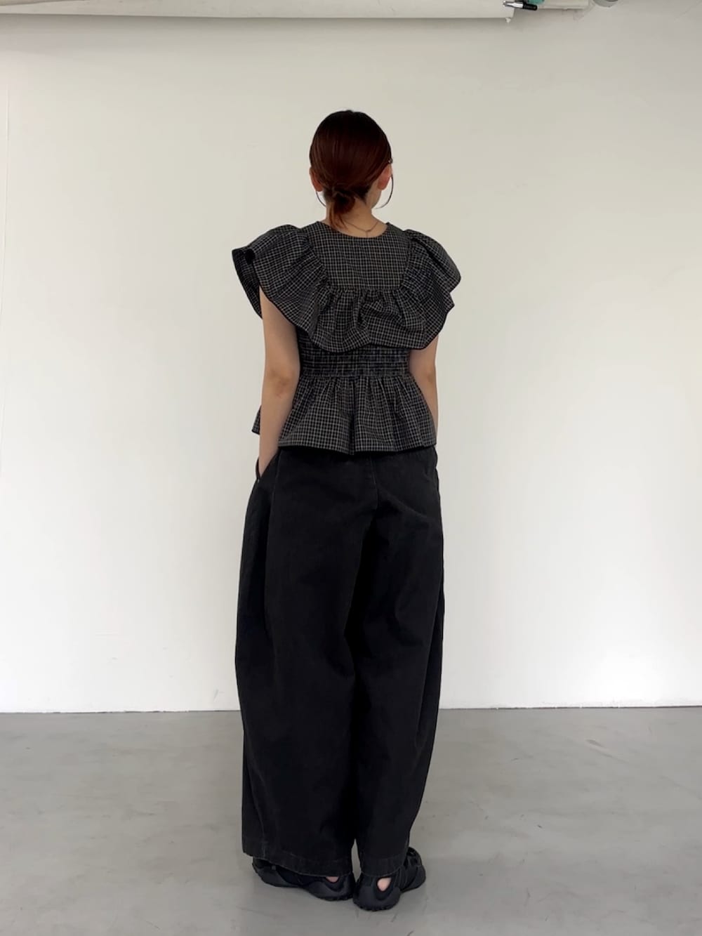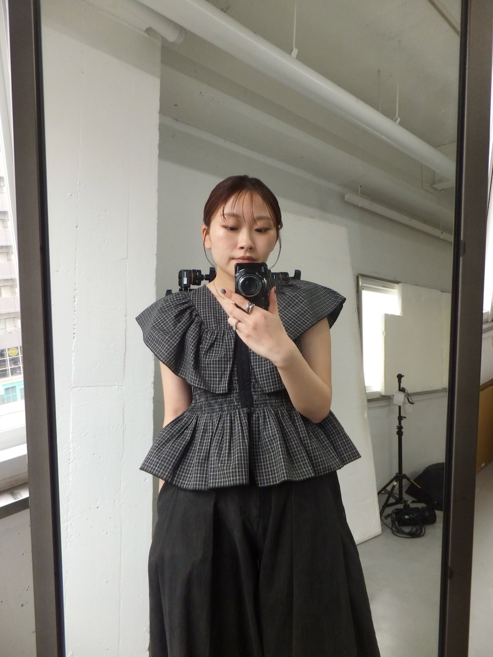 フロントホックチェックフリルブラウス