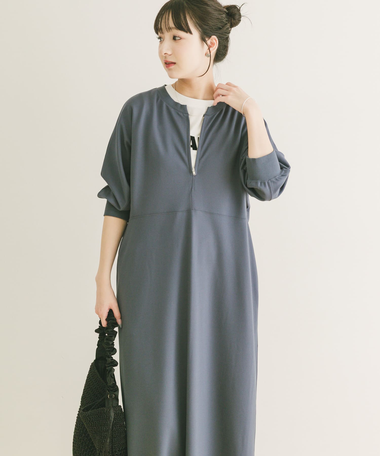 ハーフジップドルマンワンピース