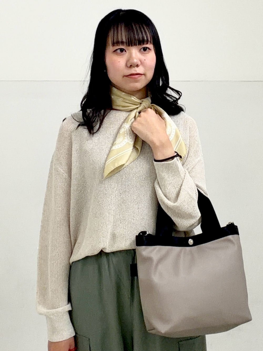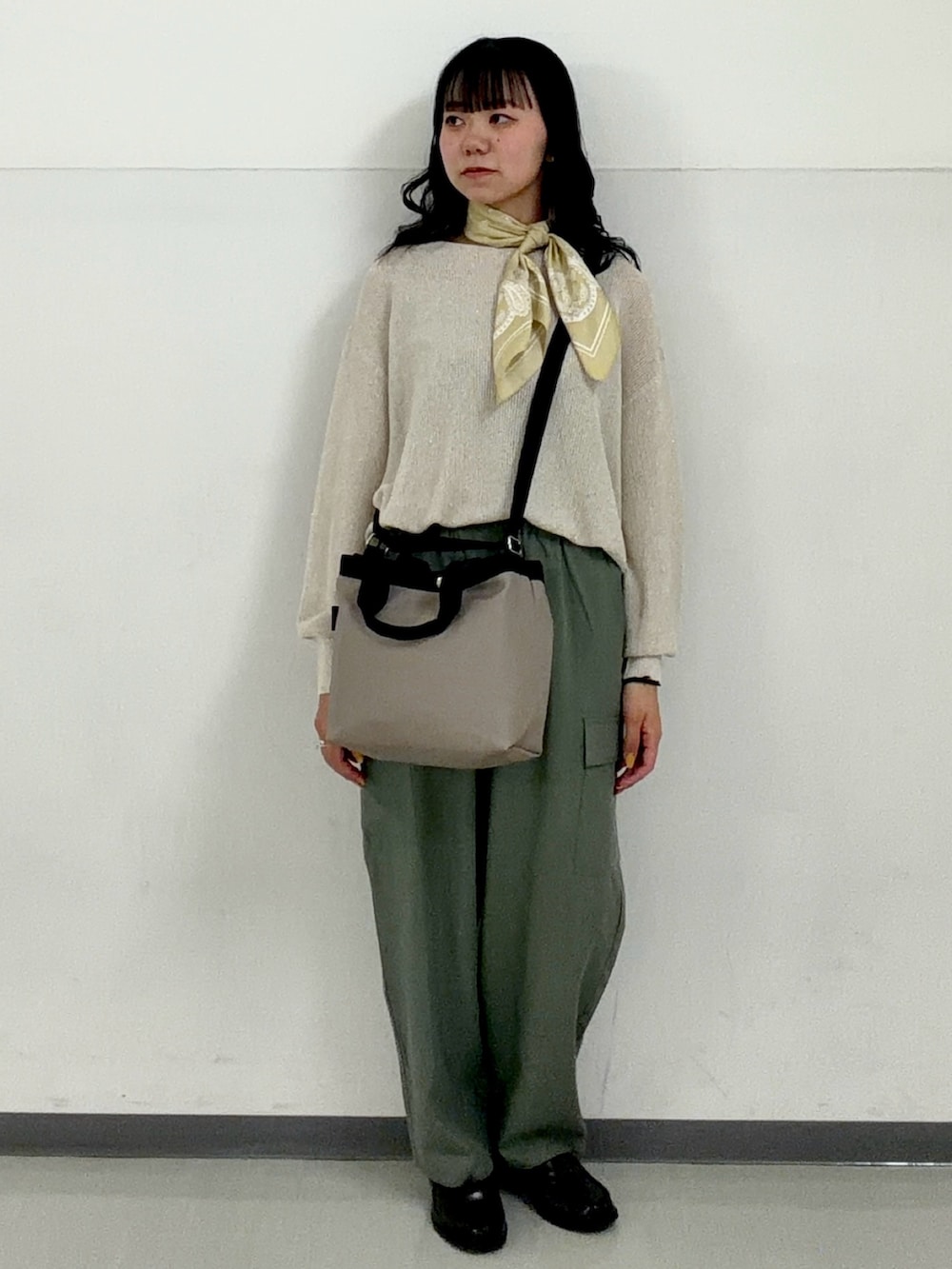 スカーフをアクセントとした春のお出かけコーデ🌸🎀