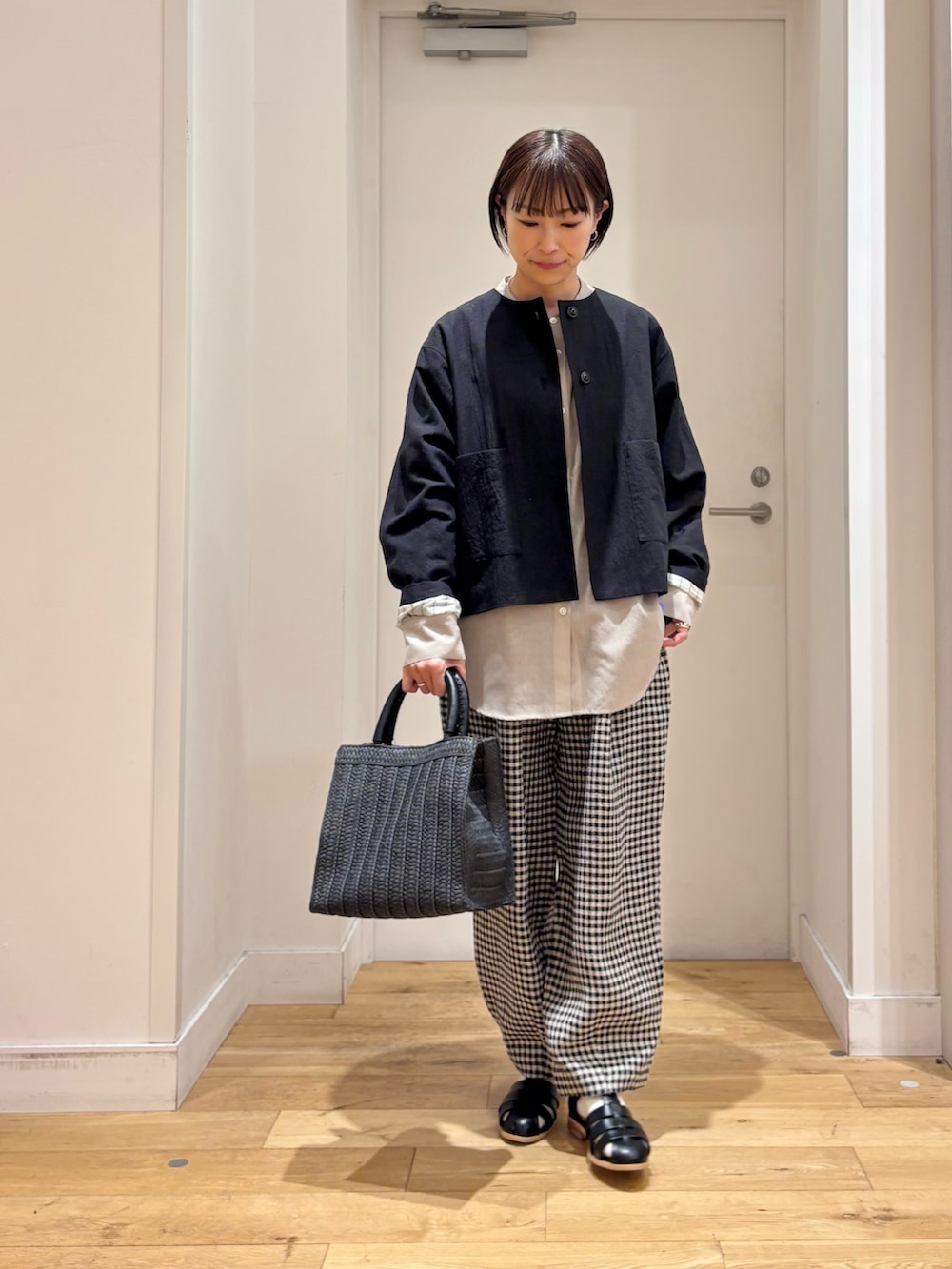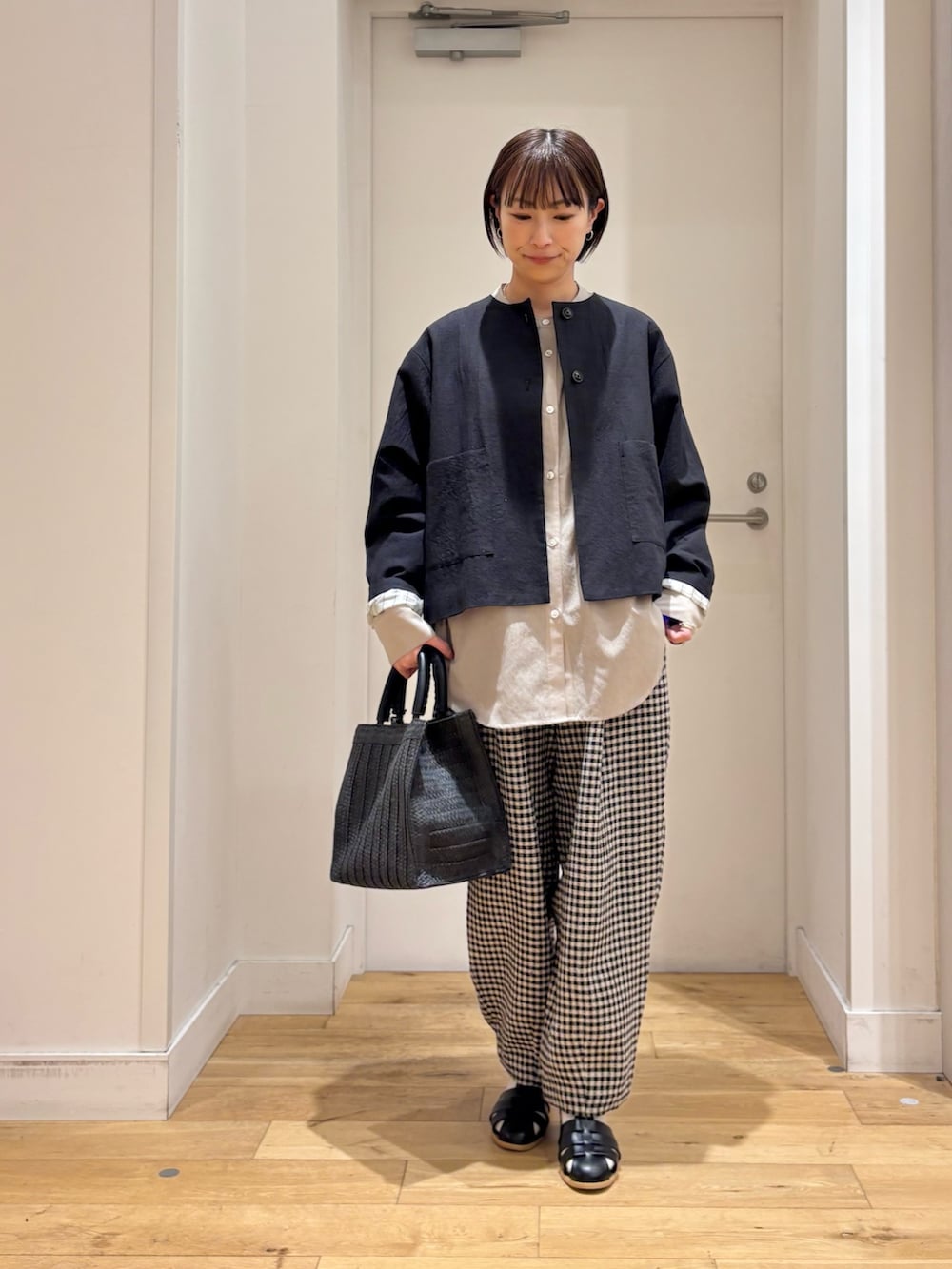 ノーカラーのジャケットは、コンパクトな丈感でスッキリと合わせていただけます!