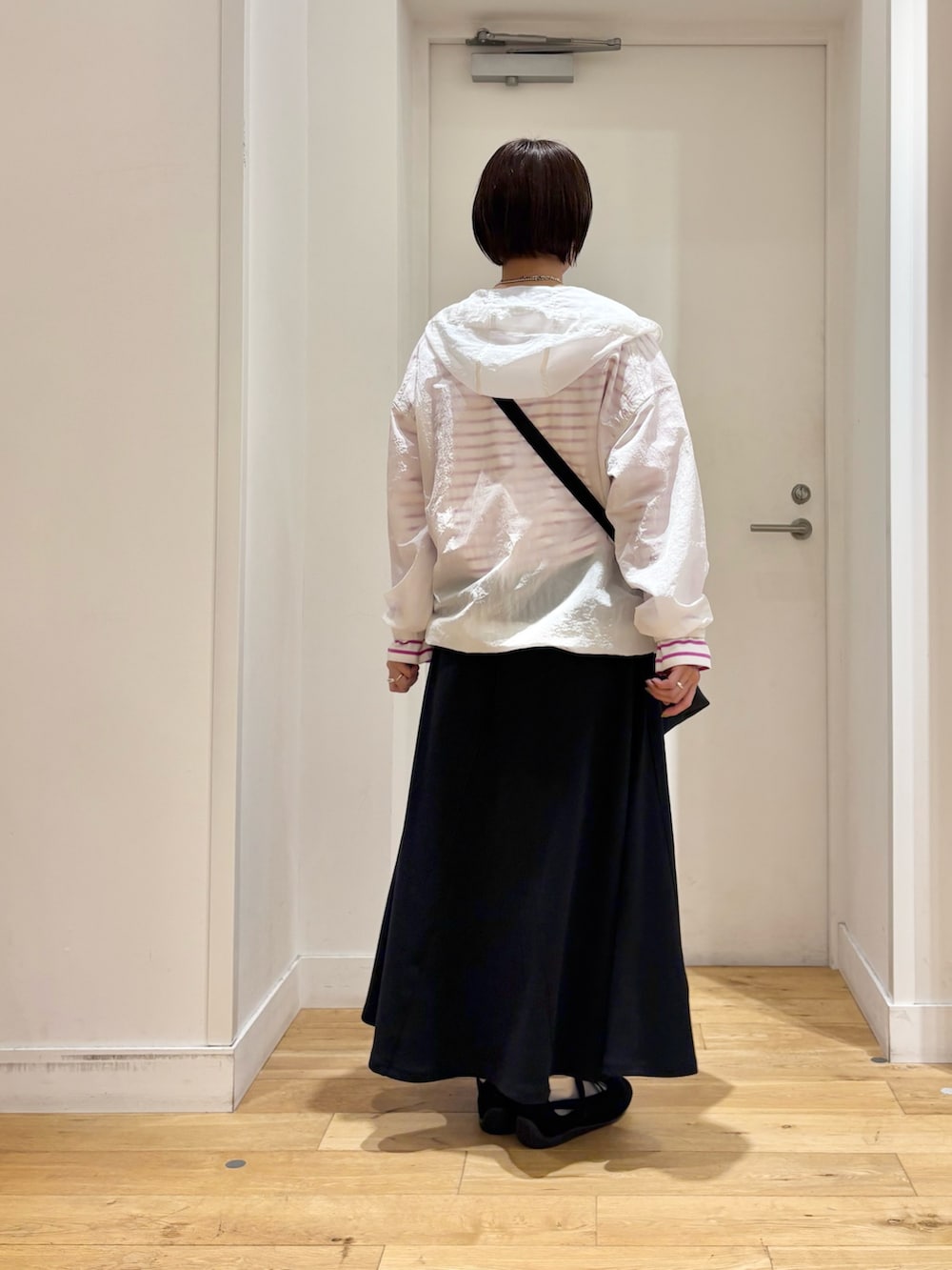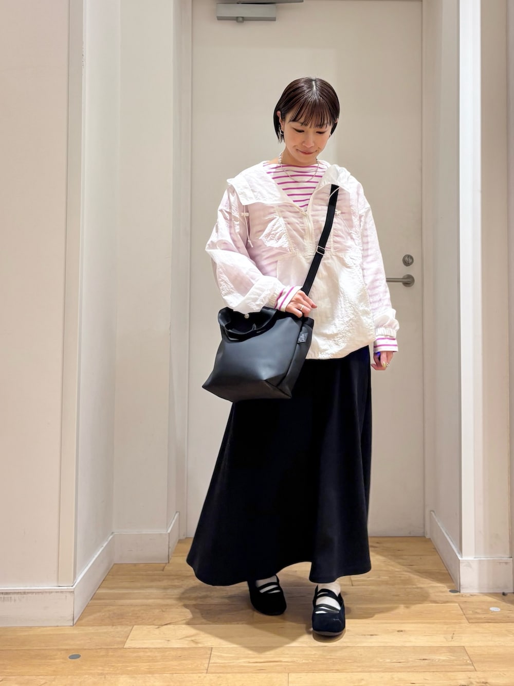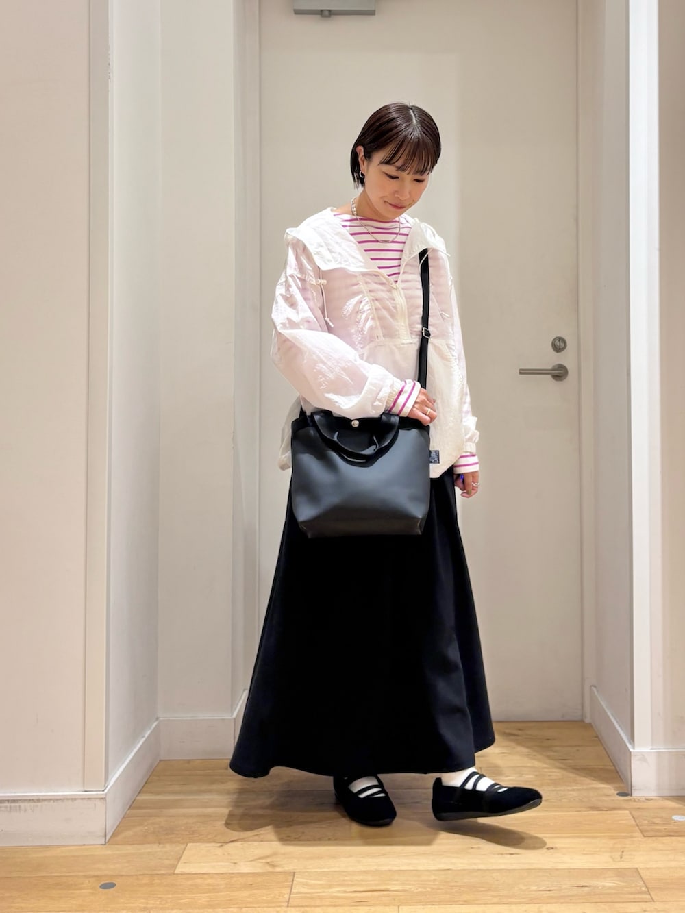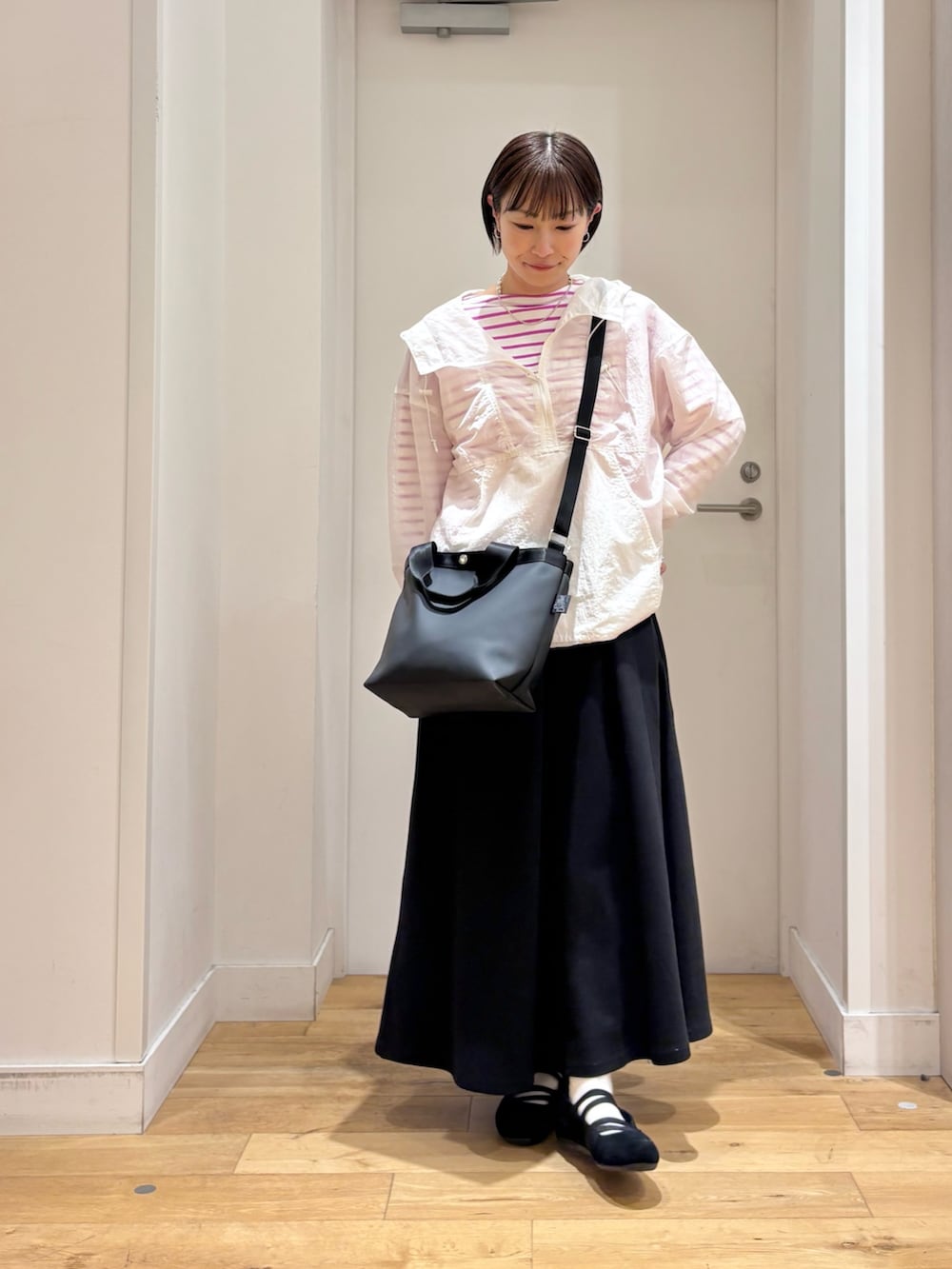 シアー感が可愛いのでインナーにはピンクのボーダーを合わせてポイントにしてみました♪