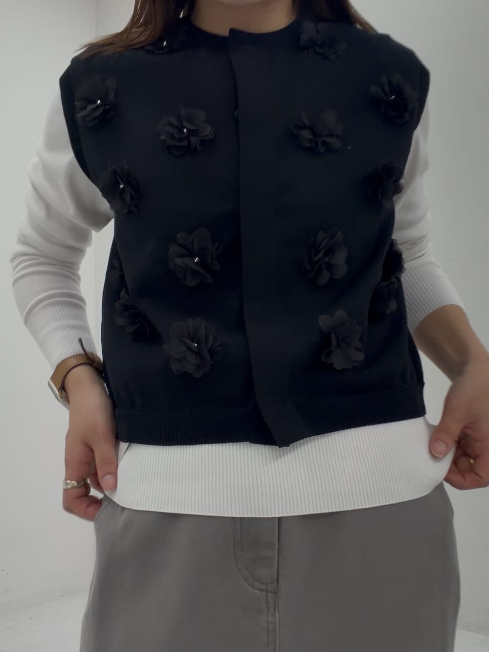 ブラックなのでフラワーモチーフでも大人っぽく着られます◎