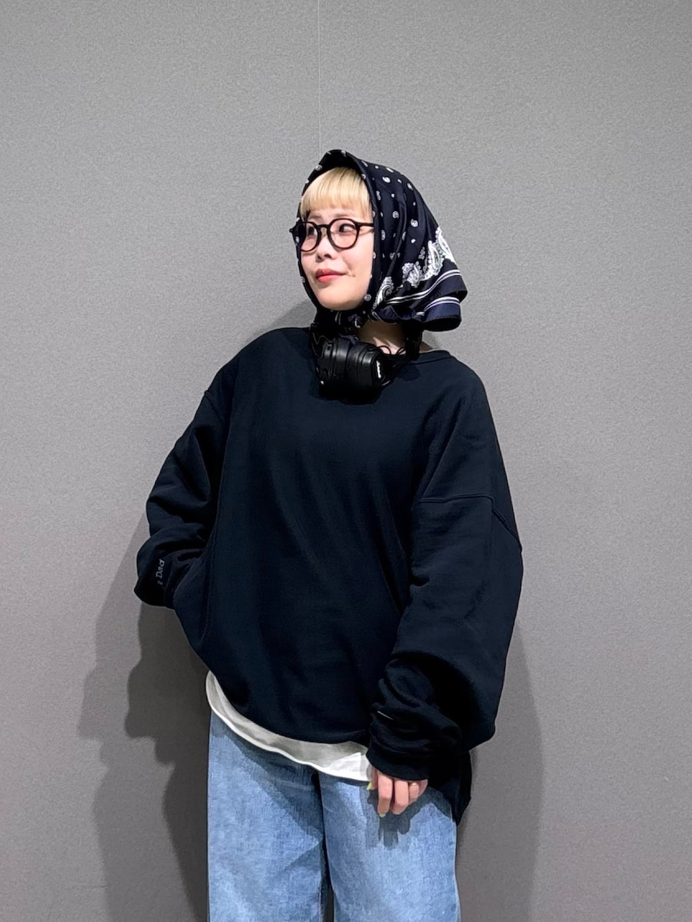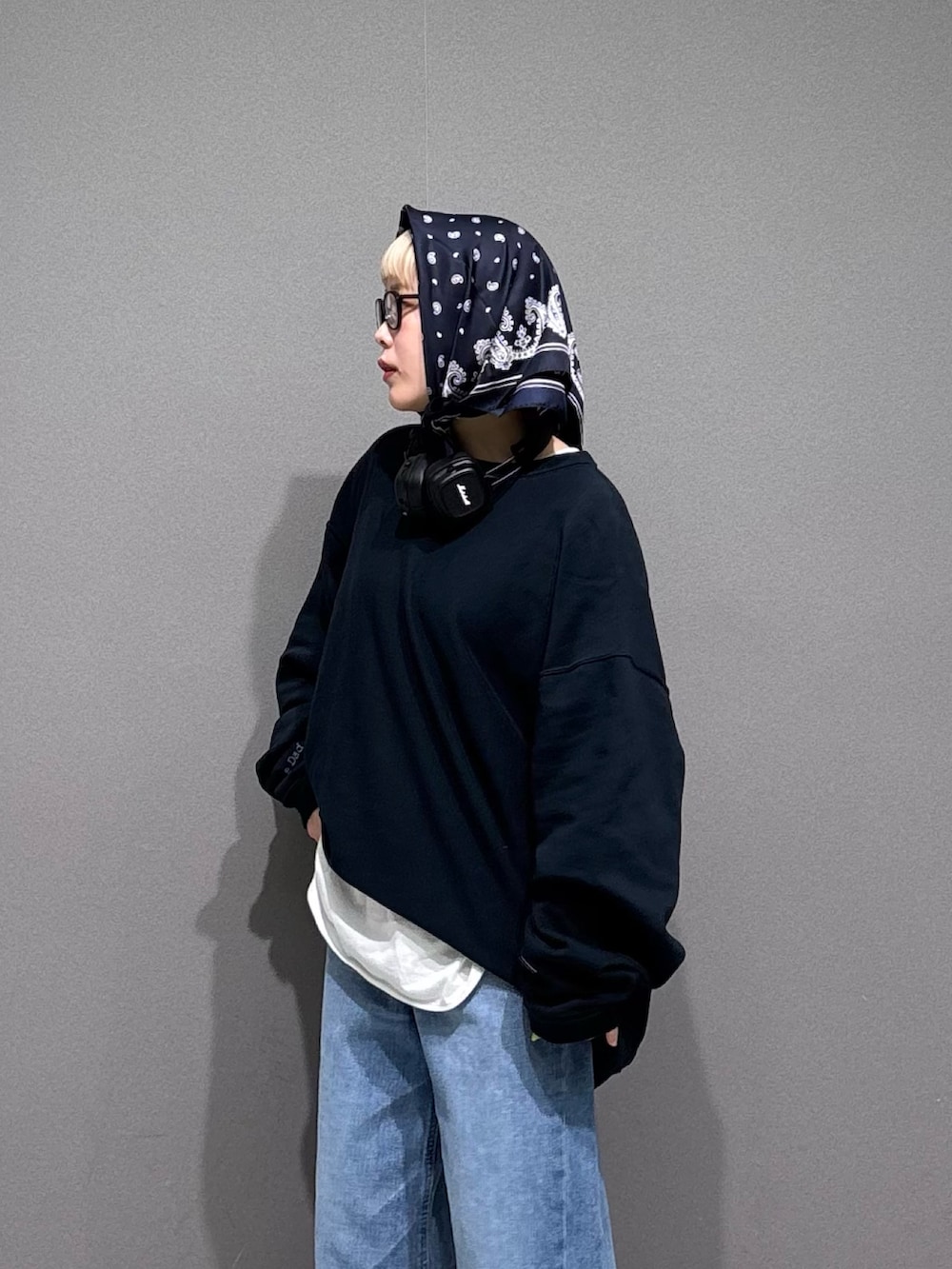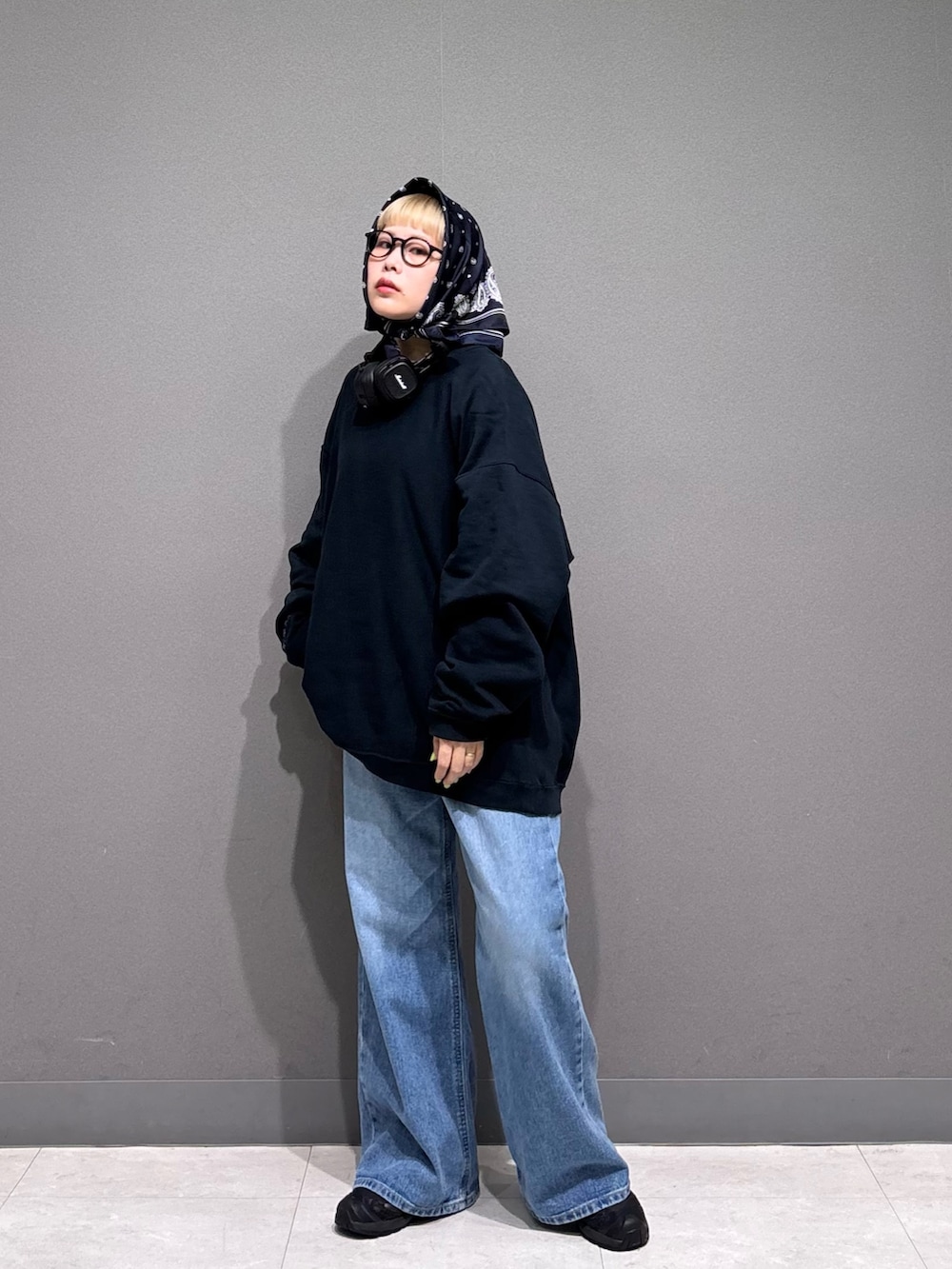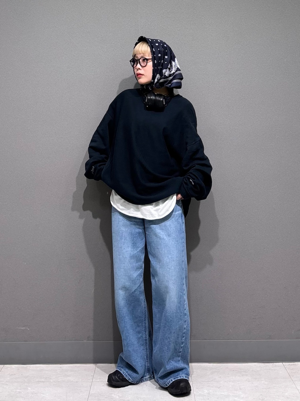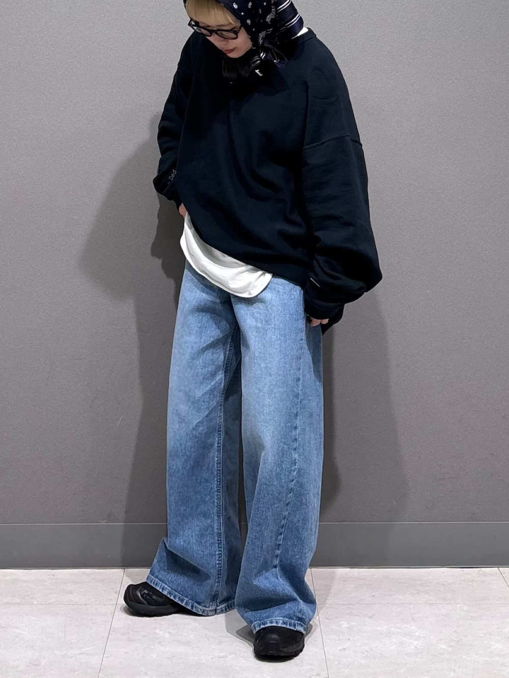 デニムをワンサイズ大きめでルーズに。