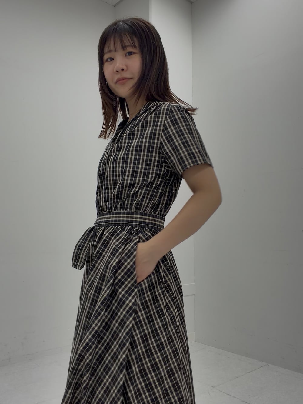 ブラック×ブラウンの落ち着いたチェックで程よい華やかさを纏えます◎