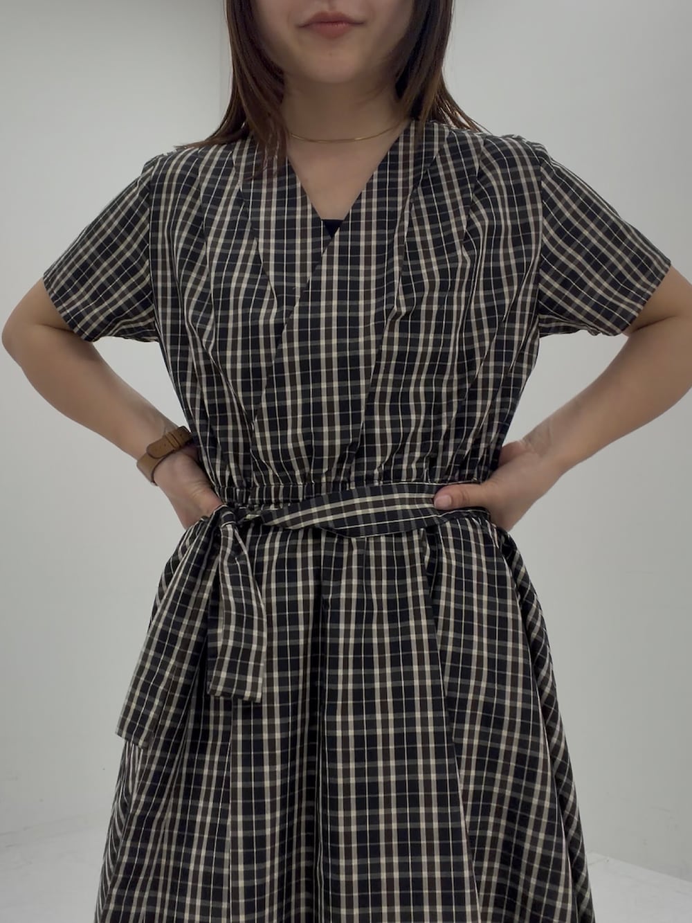 『WEB/一部店舗限定』チェックカシュクールワンピース