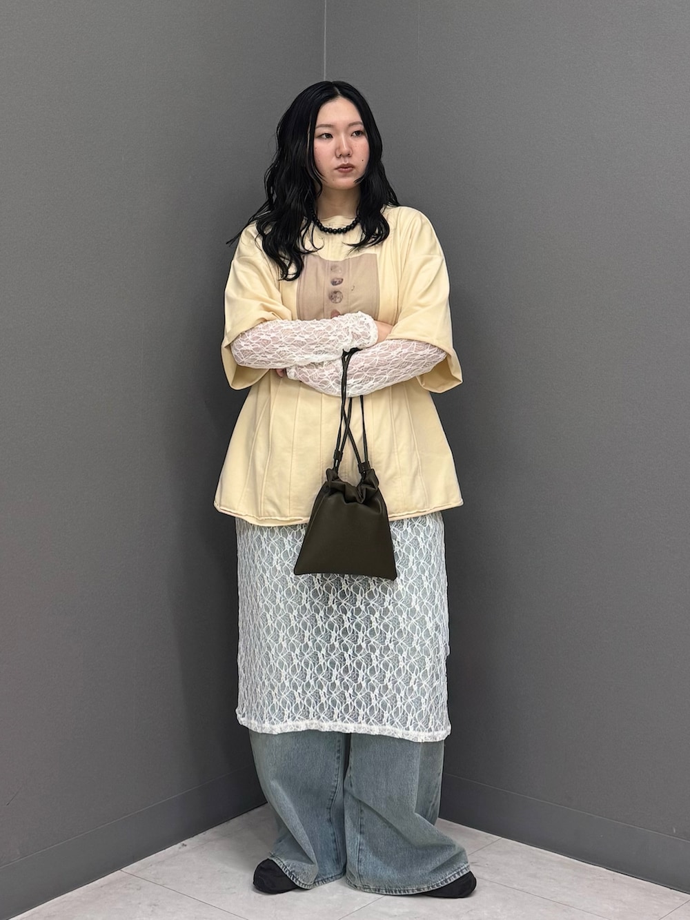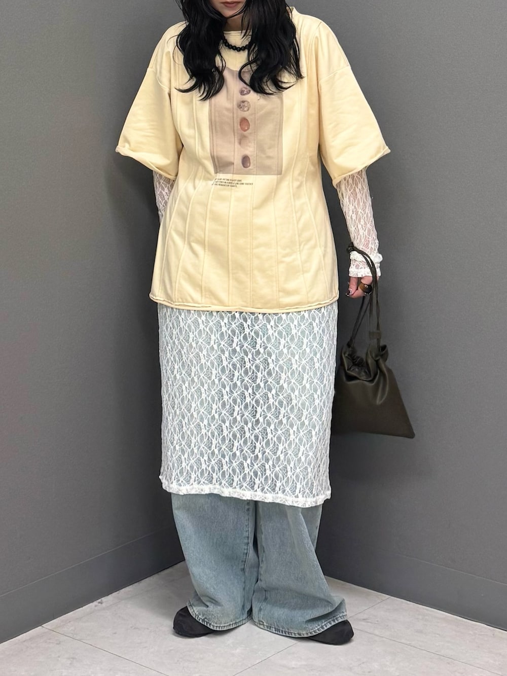 今回はレースワンピースをインしてレイヤードスタイルに!