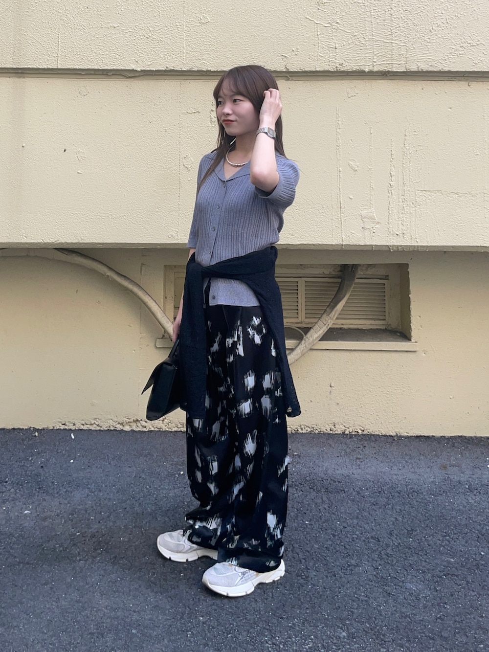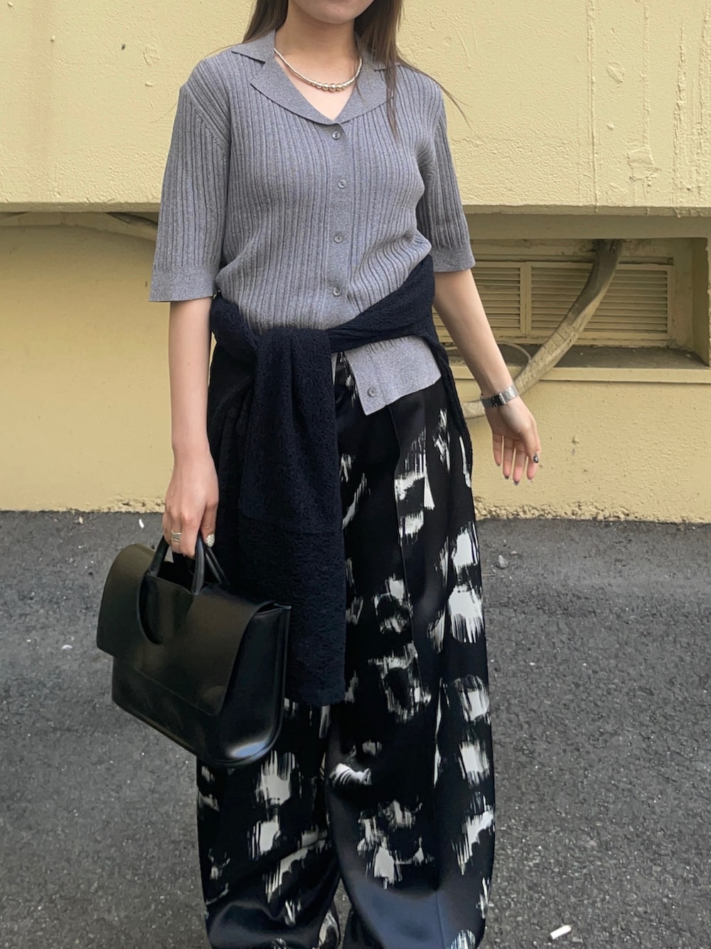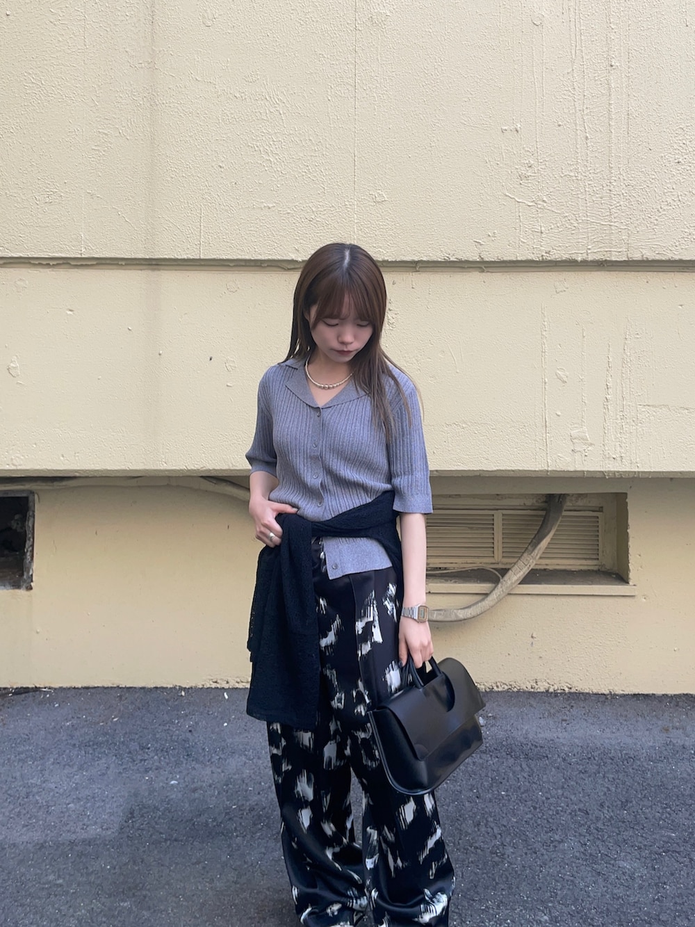 トップスはニットポロカーディガンです!リブが入ったシンプルだけどデザイン性の高いアイテムで、着ると体に沿うのでスッキリして見えます!着心地もとっても良いですよ✨