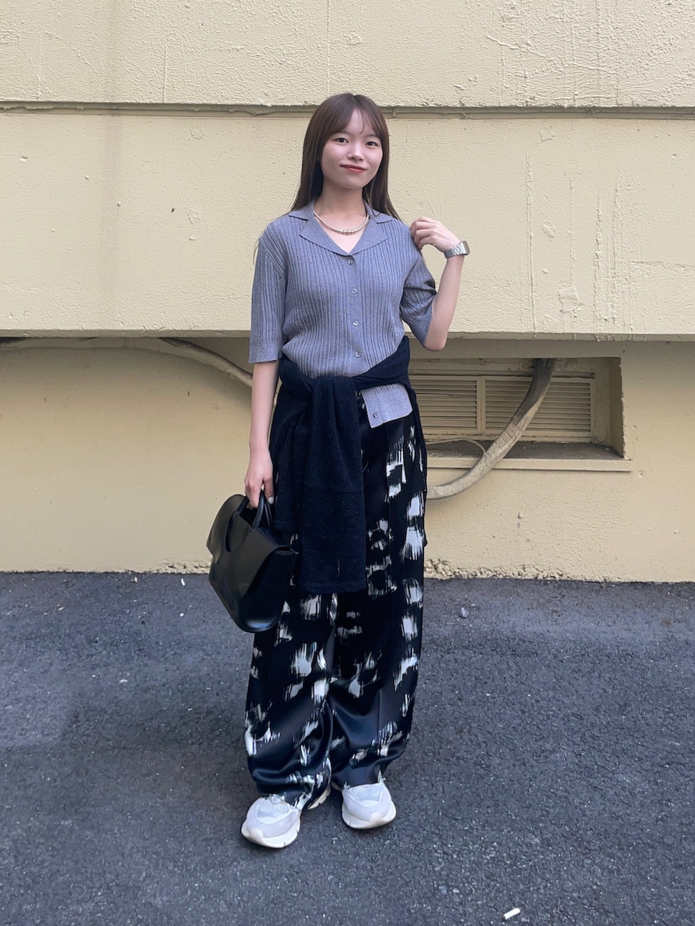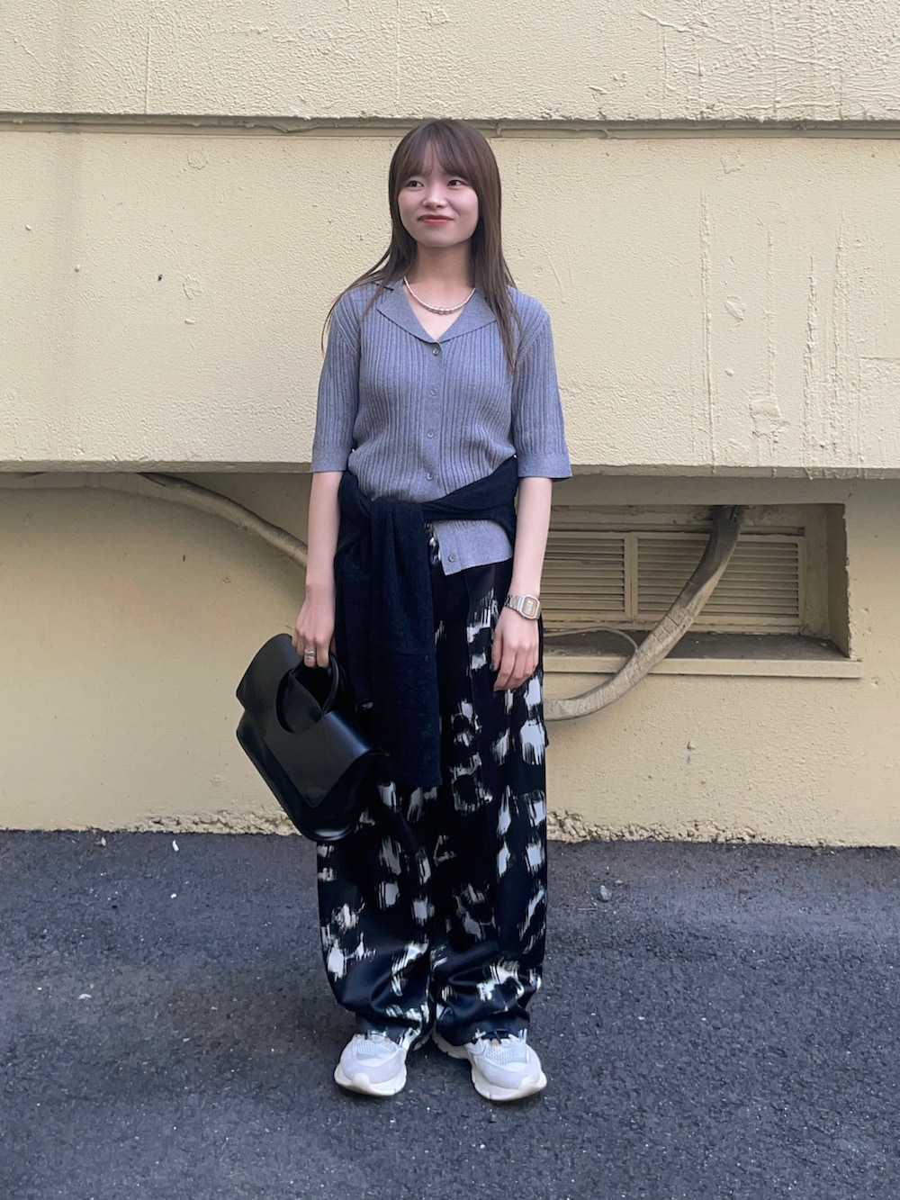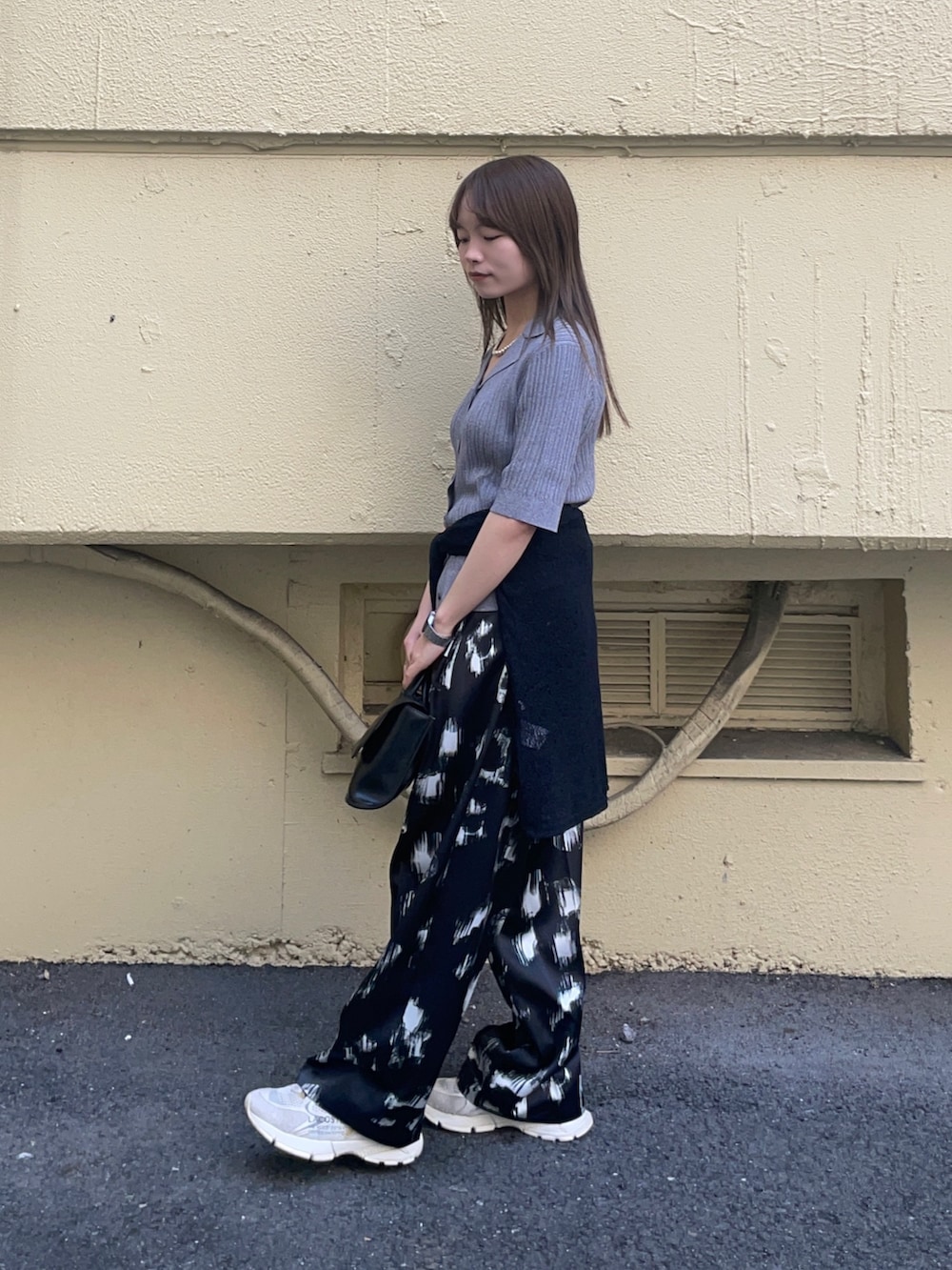 トップスはニットポロカーディガンです!リブが入ったシンプルだけどデザイン性の高いアイテムで、着ると体に沿うのでスッキリして見えます!着心地もとっても良いですよ✨