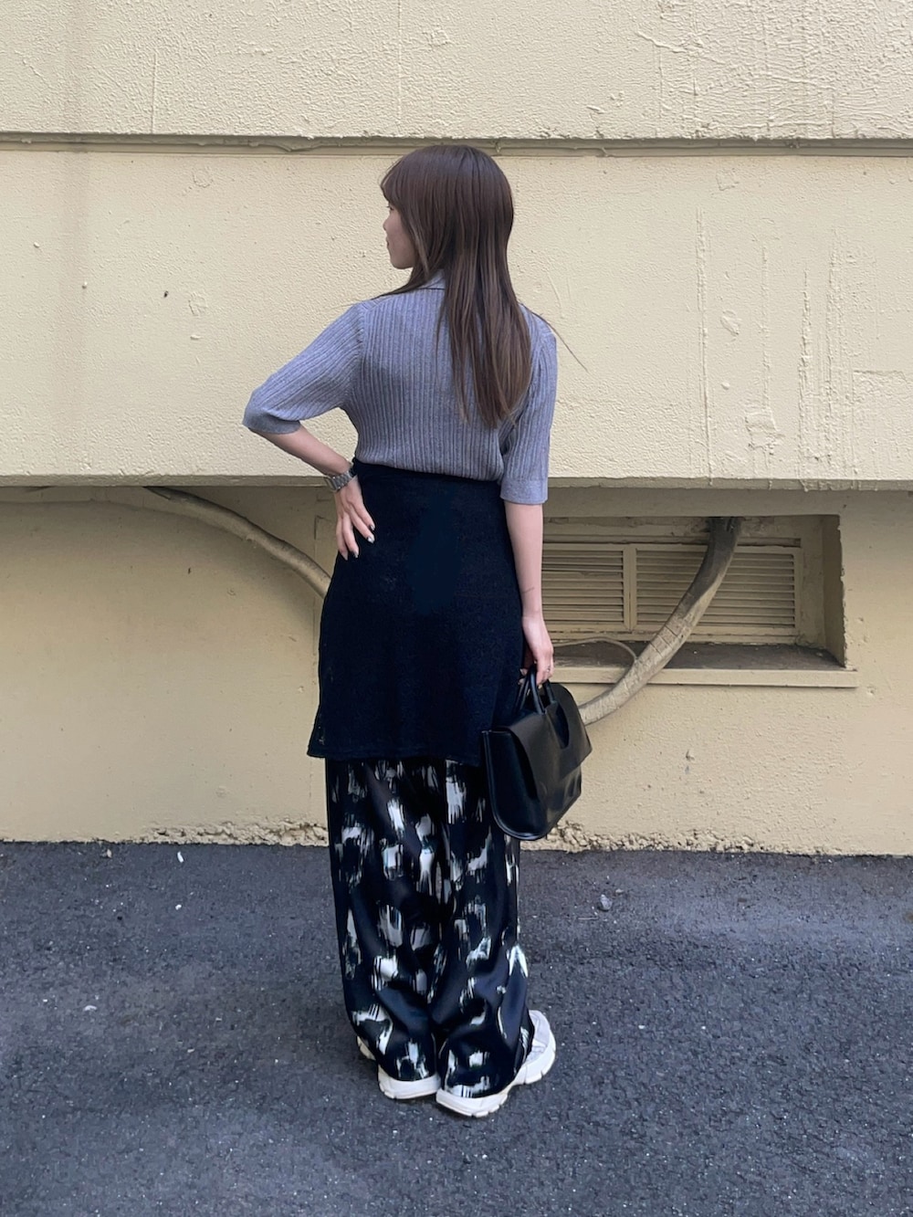 パンツはブラックフラワーパンツで、かなりウエストたくし上げてます!柄模様が可愛く、シンプルなトップスにアクセントで合わせていただきやすいです!、