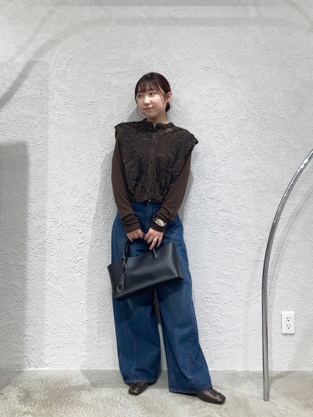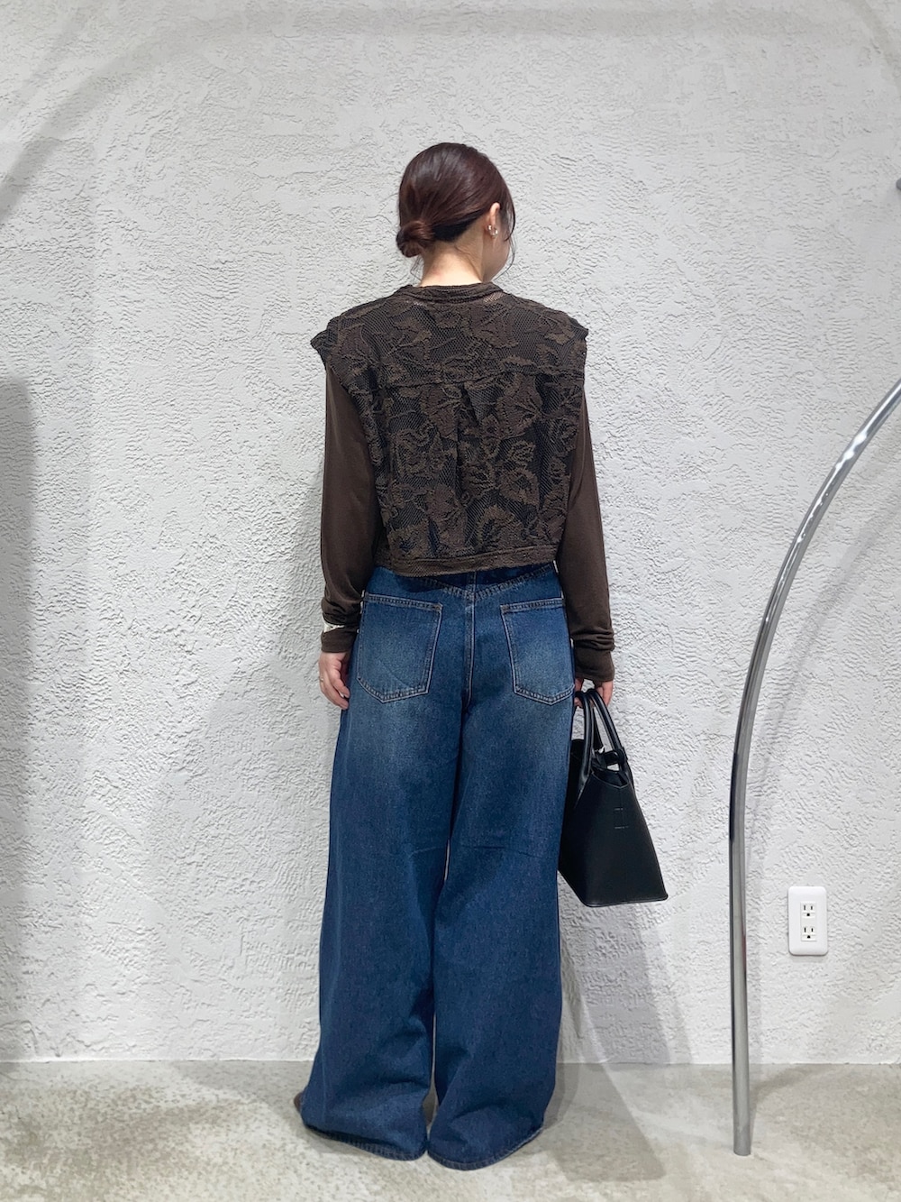 サイドでウエスト調整できるバレルレッグラインのワイドデニム👖