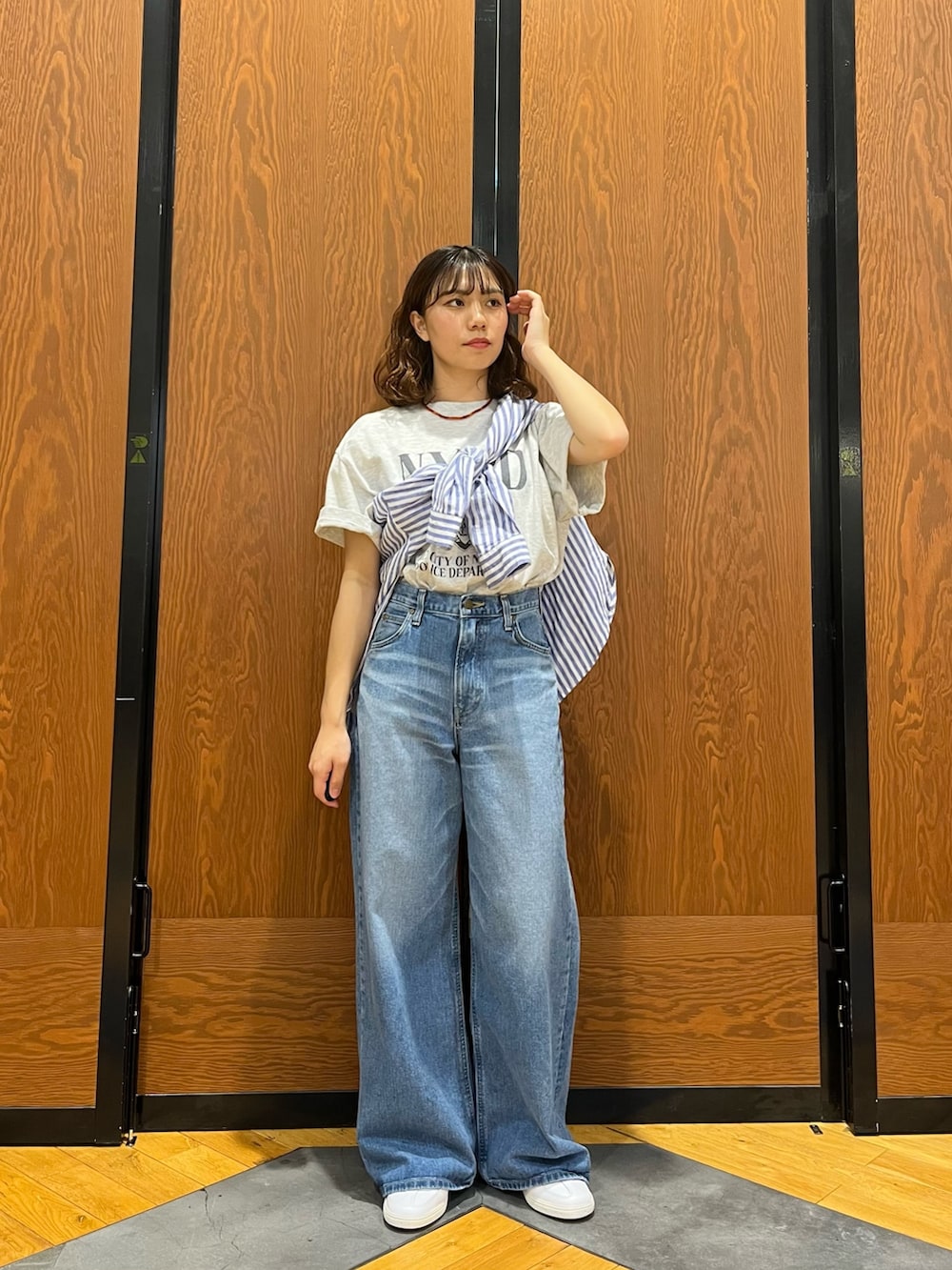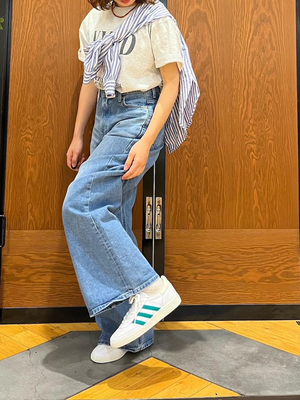 寒暖差が激しい今の時期に羽織りをたすき掛けしてアクセントにするだけで、おしゃれにもなるし寒くなったら羽織れて一石二鳥コーデ!