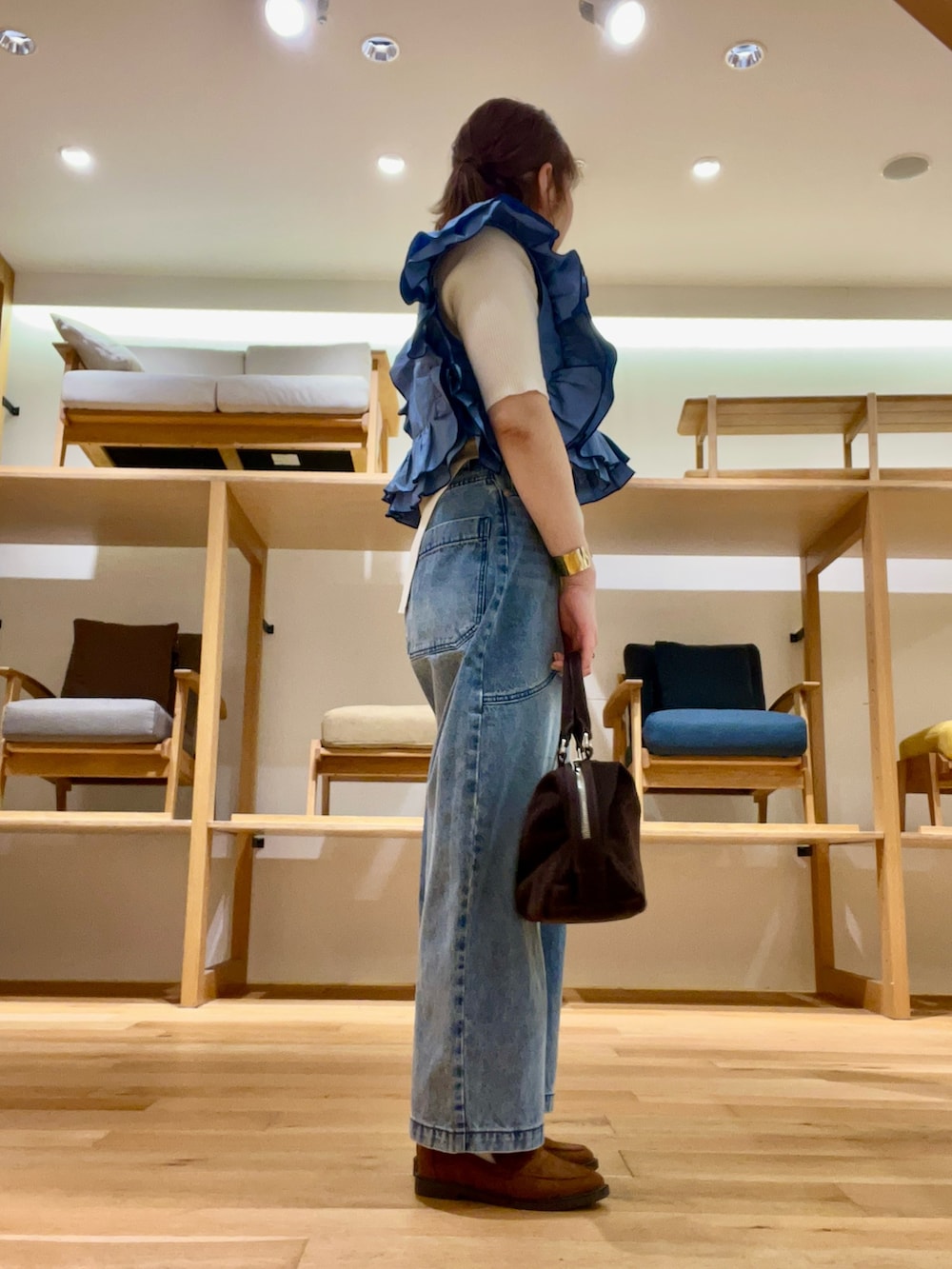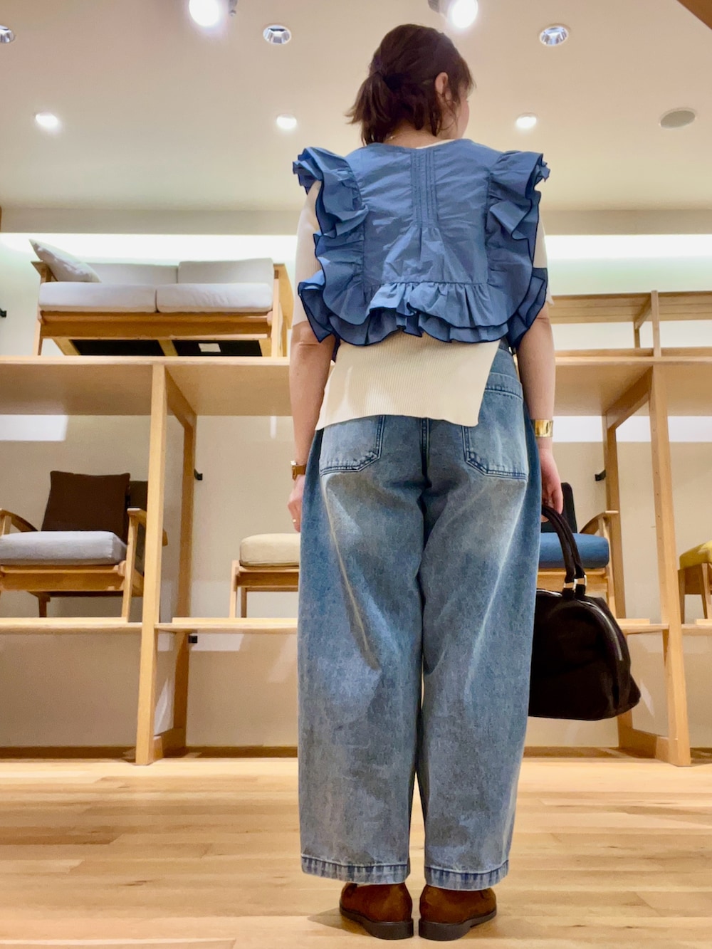 ボトムはボリューム感がポイントになりローファー合わせでこなれ感をプラスしました‼︎
