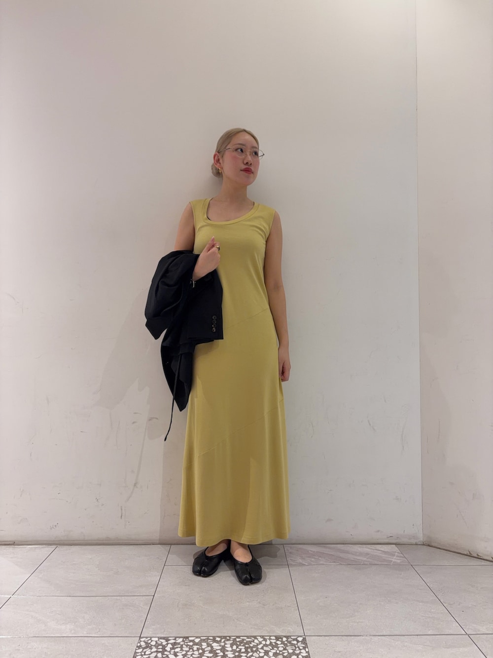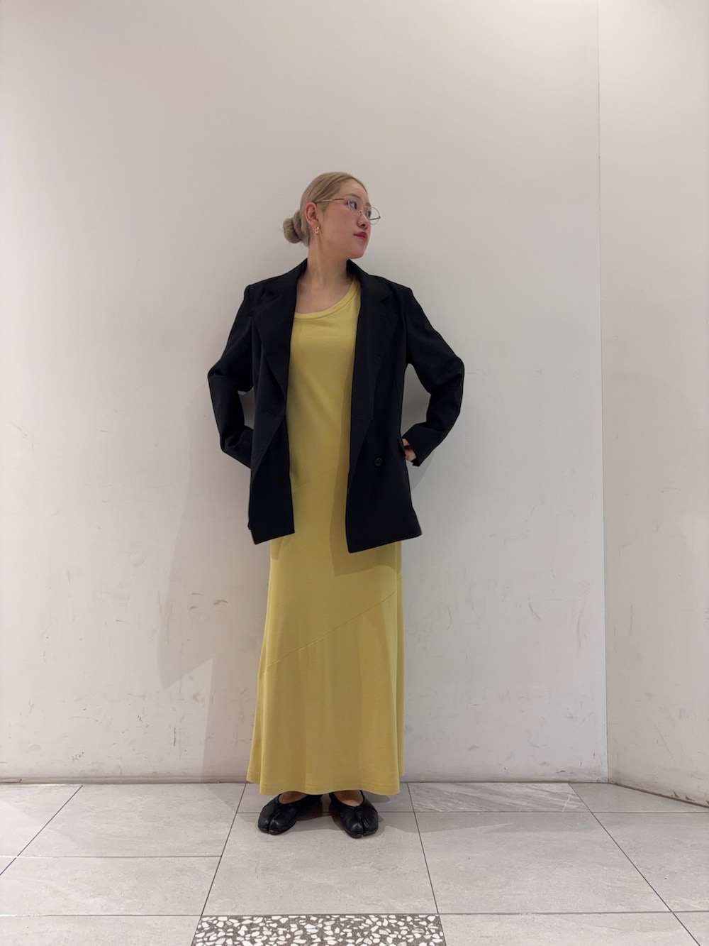 マスタードカラーのワンピースは1枚で華やかに!ネックデザインも可愛いです♡