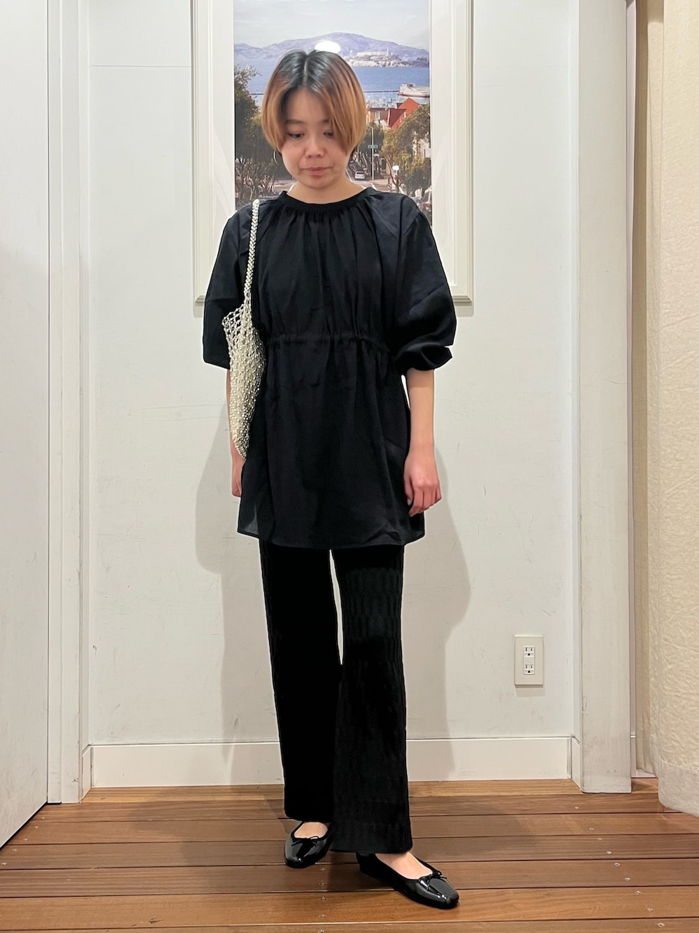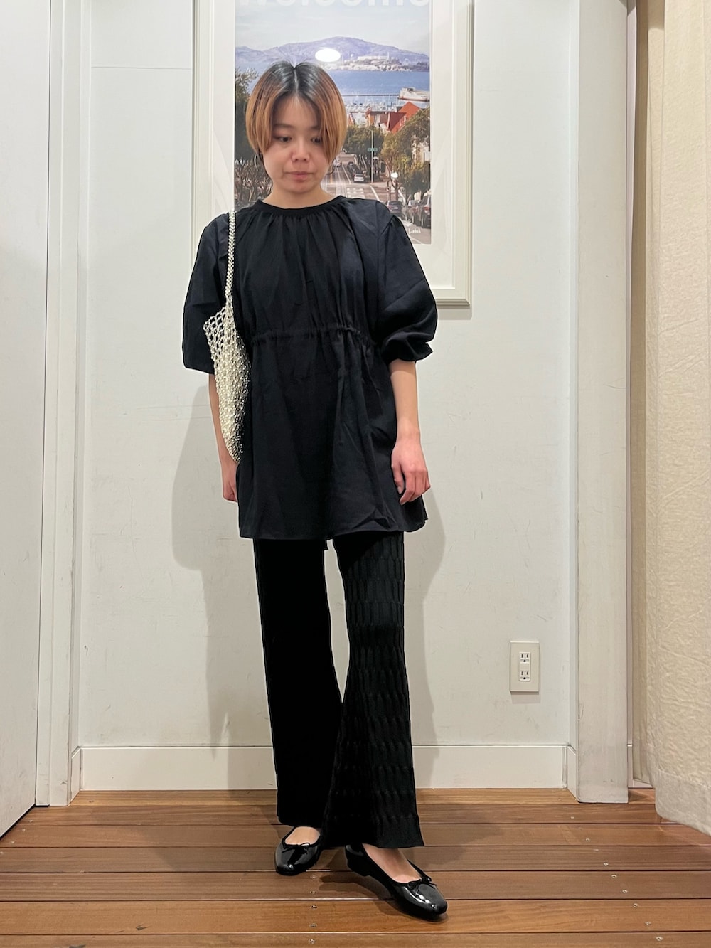ウエストがすっきり見えて、スリムなパンツと相性いいです。