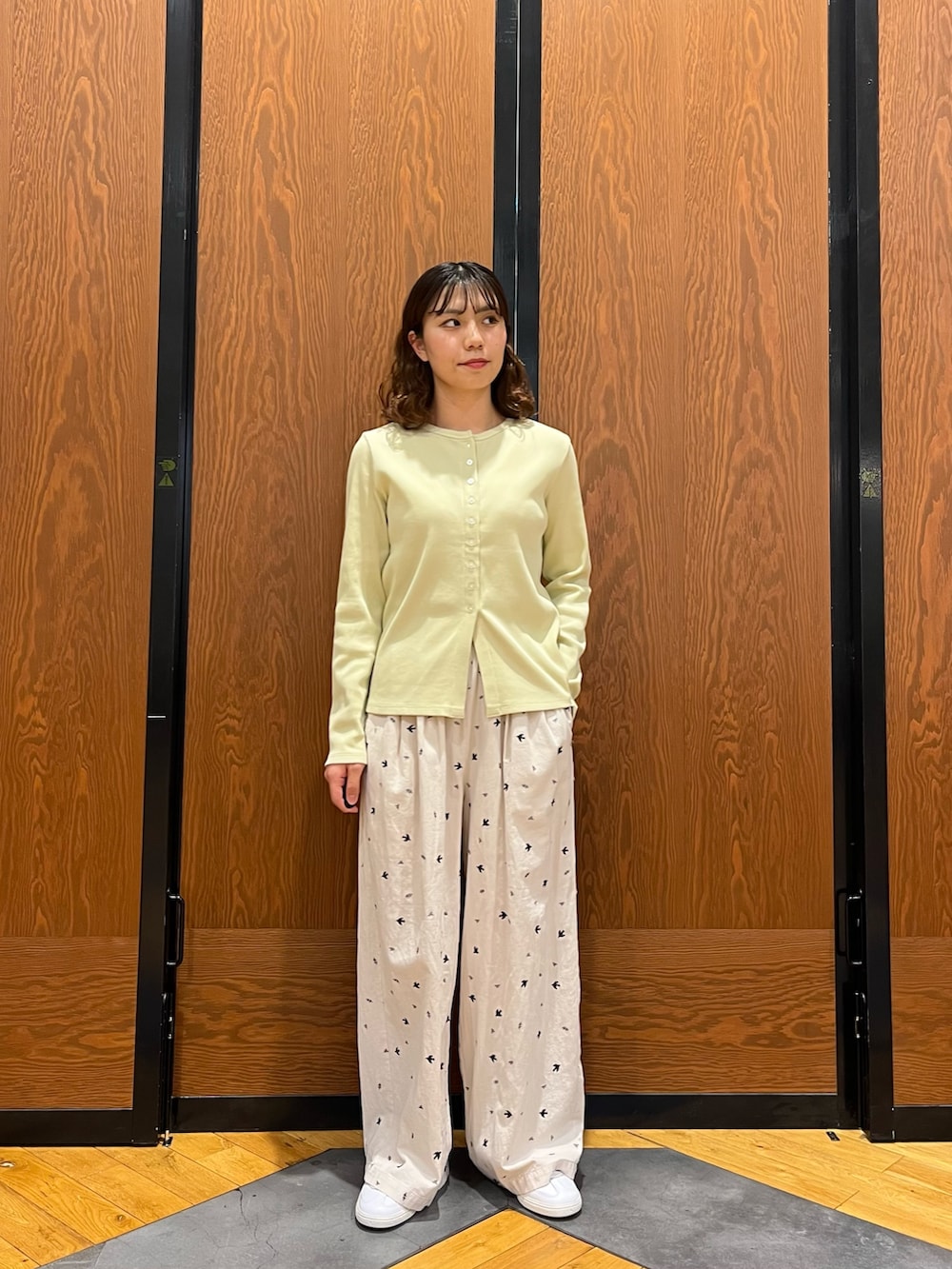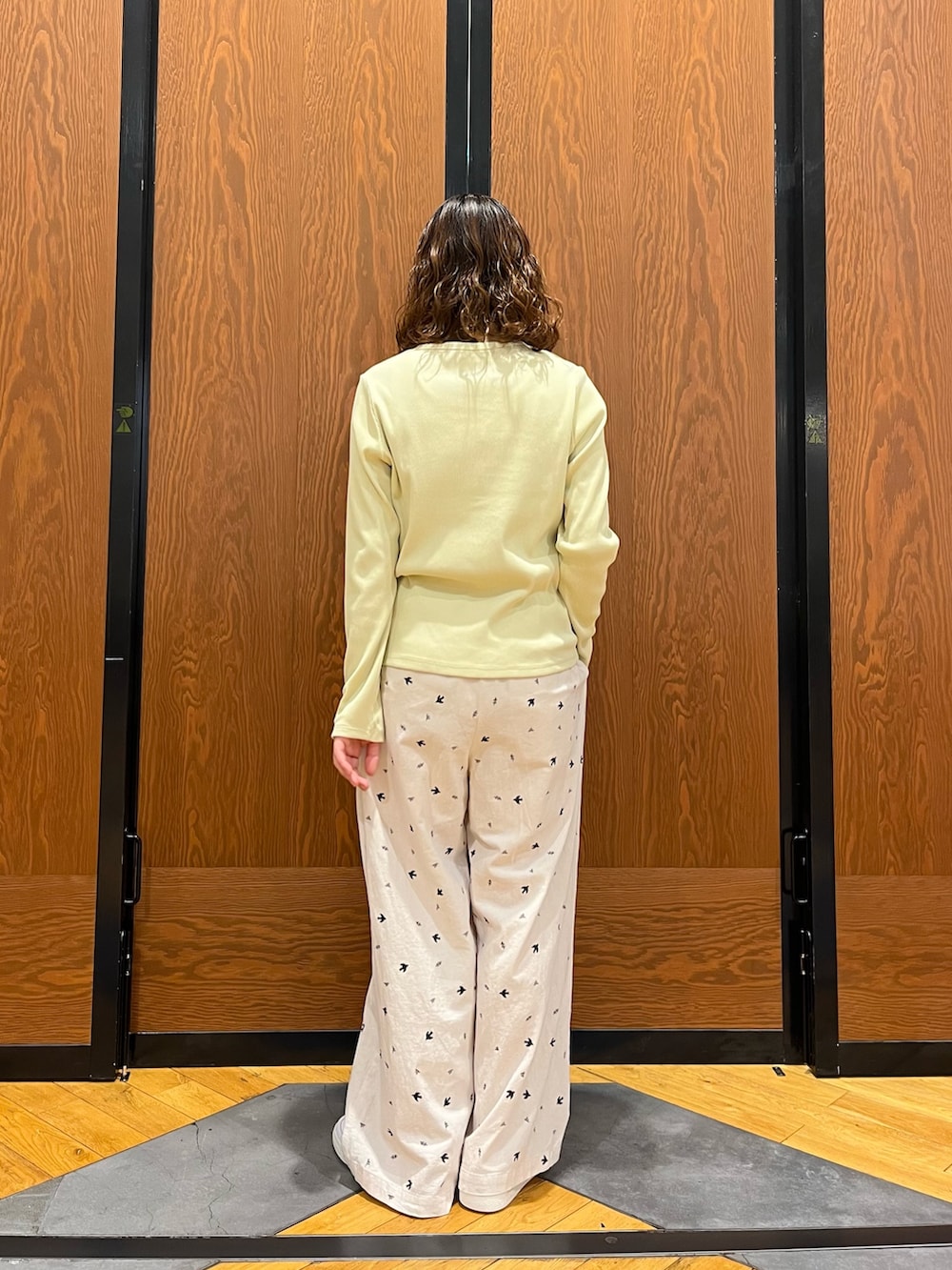 パステルカラーのトップスにツバメの刺繍が施されたリネンパンツ!