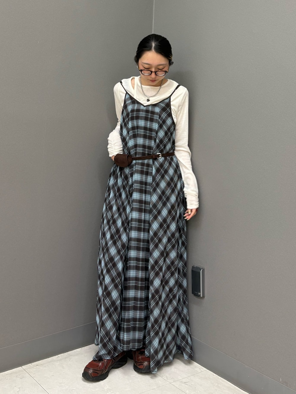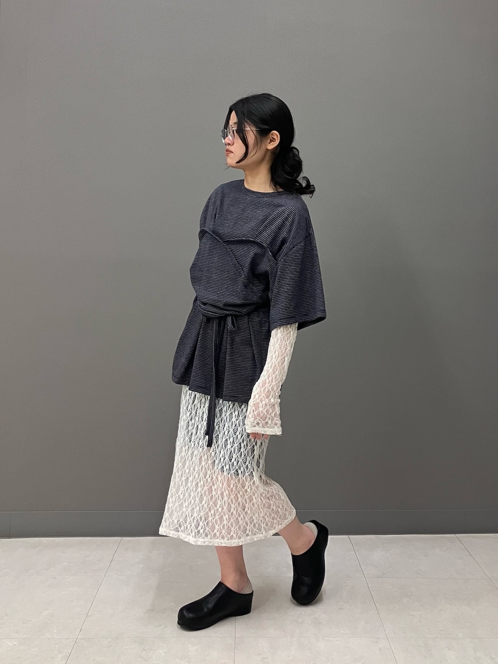 普段ミニ丈ボトムを履かない方でも、このロング丈のレースワンピースを重ねることで抵抗感なくミニ丈にトライして頂けると思います。