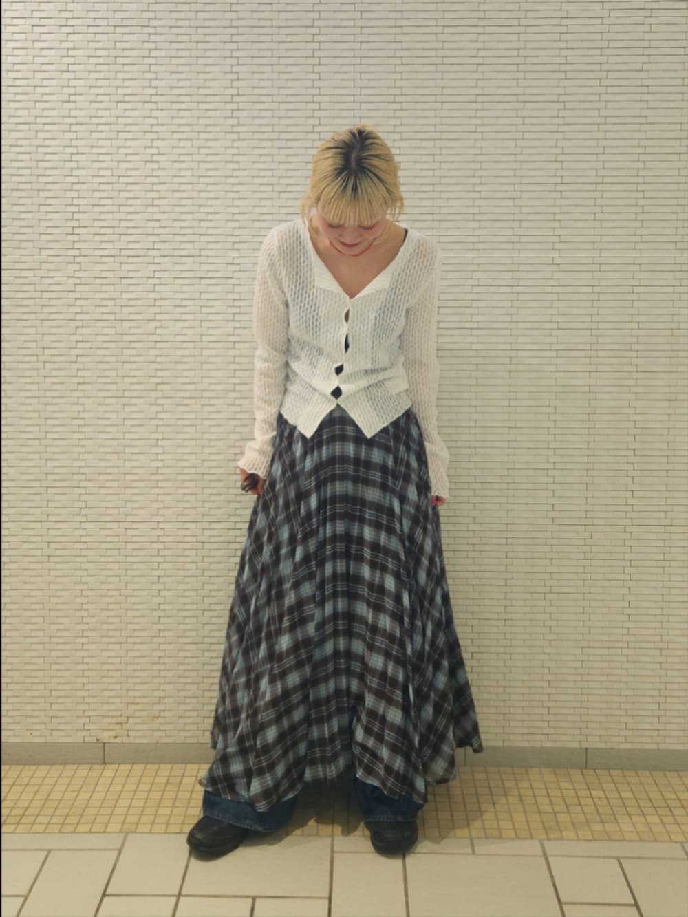 サーキュラーチェックプリーツスカート