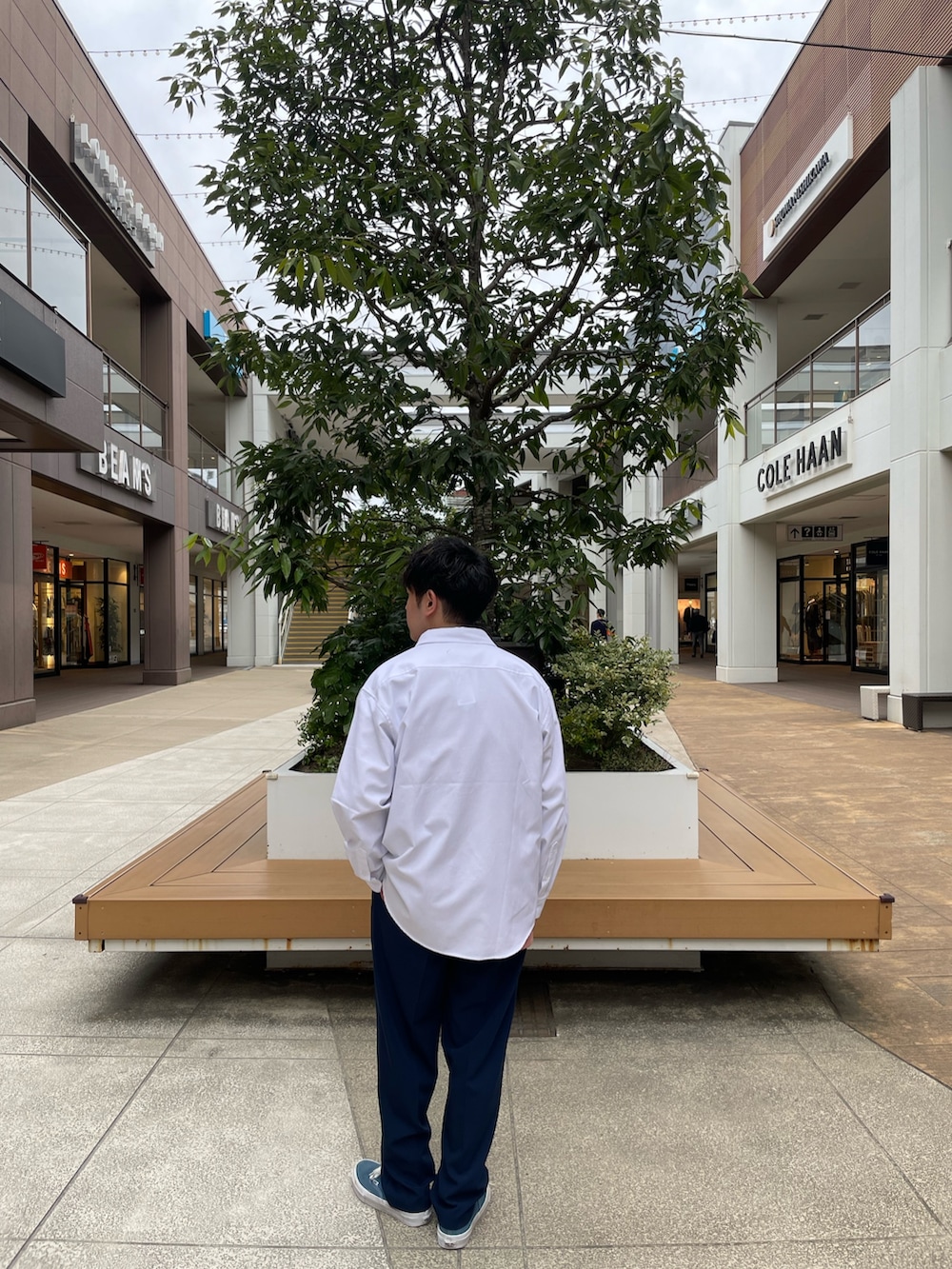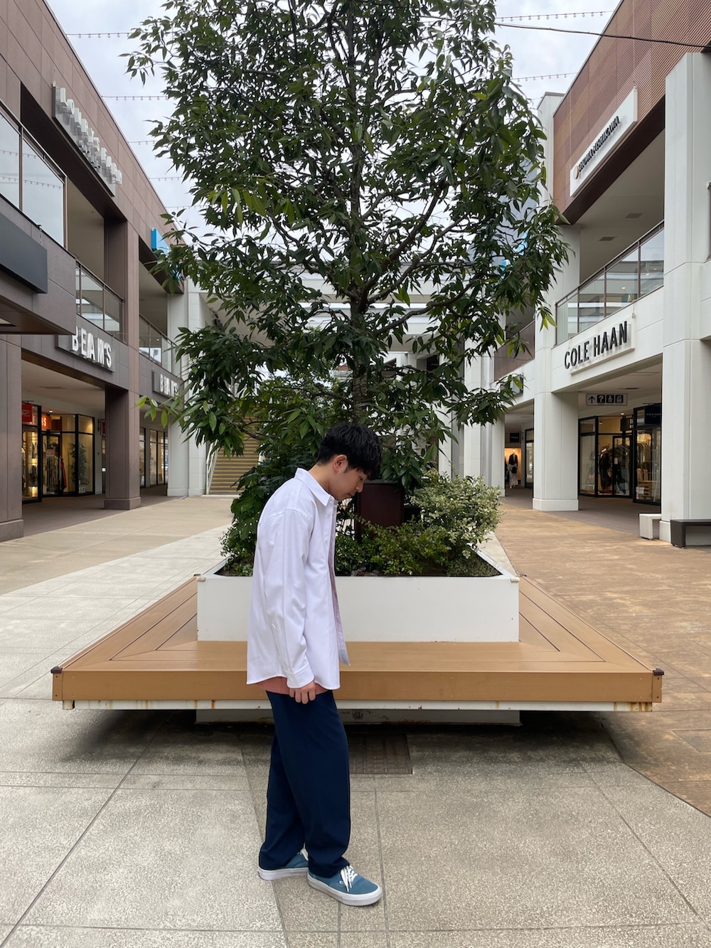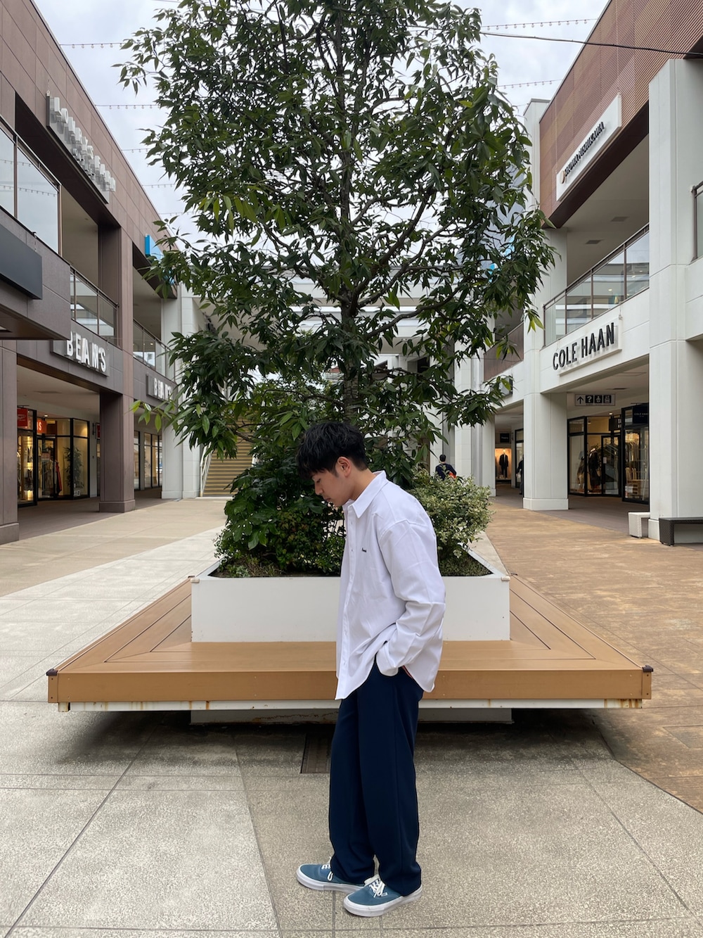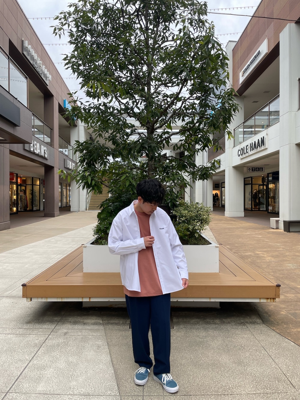 定番シャツにカラーを加えることで人と被りにくいスタイリングができます。