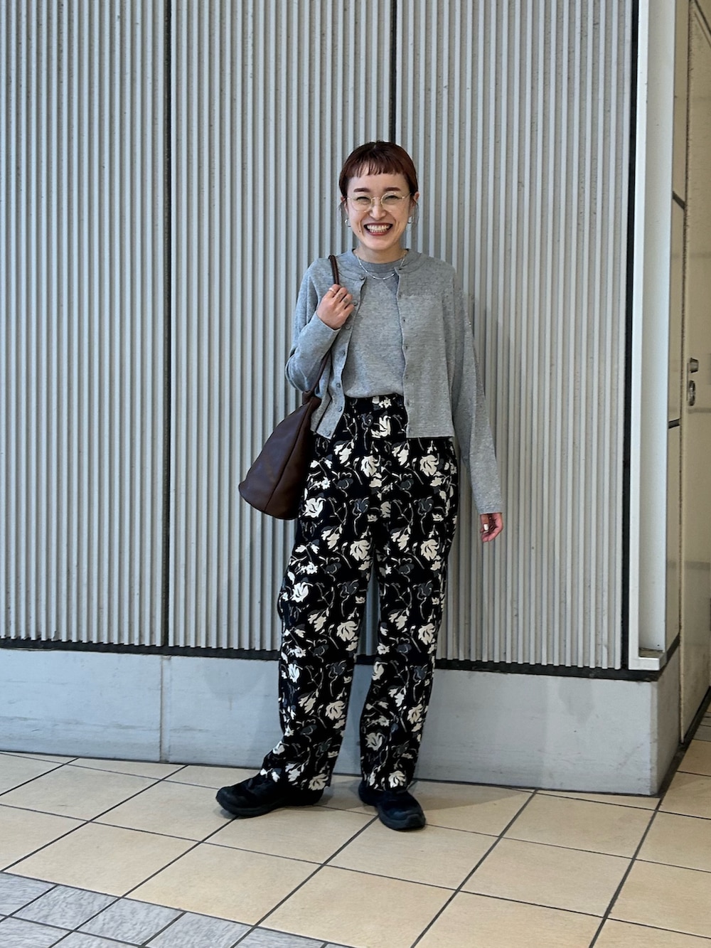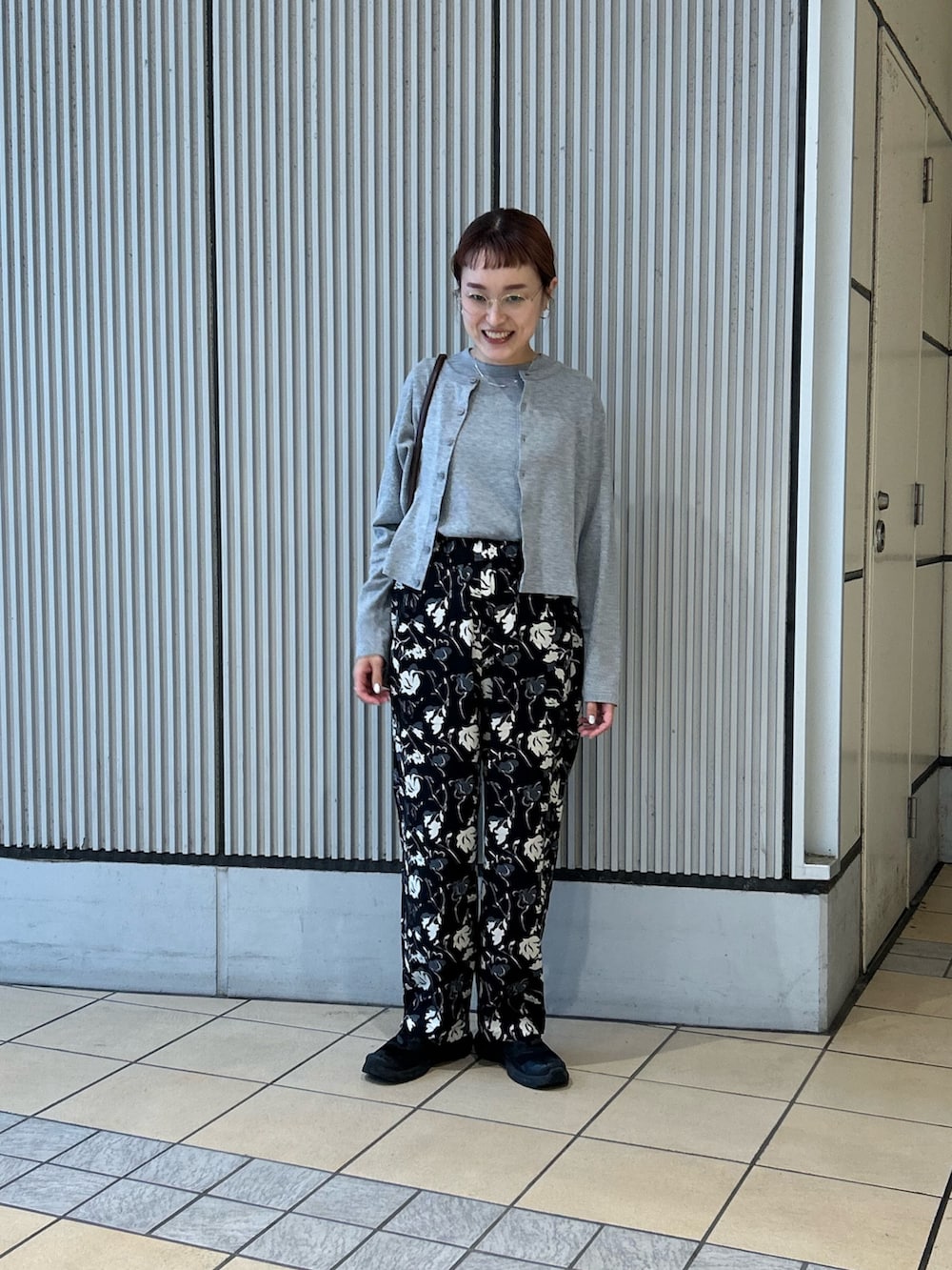 ストレートシルエットが綺麗な花柄パンツ、可愛いです。