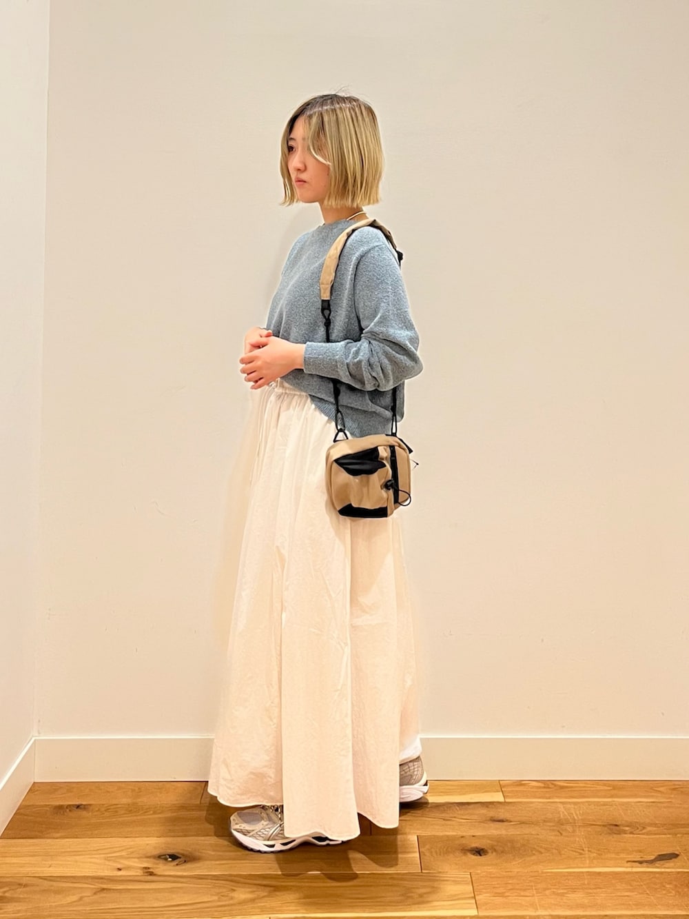 肌寒い時期にはスプリングコートやジャケットを羽織りやすいサイズ感です。