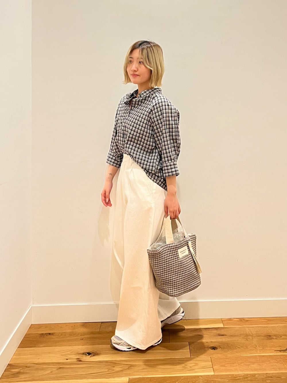 肘の隠れる半端袖が二の腕もカバーしてくれ、こなれ感もプラスしてくれるので1枚で様になるアイテムです。