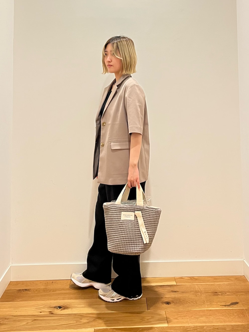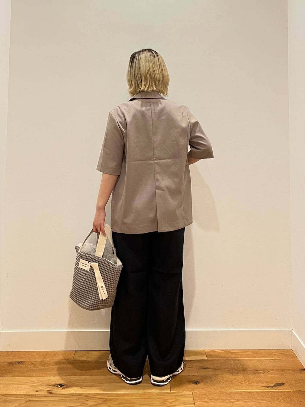 同素材のパンツと合わせたセットアップスタイルなら、より洗練された印象に。