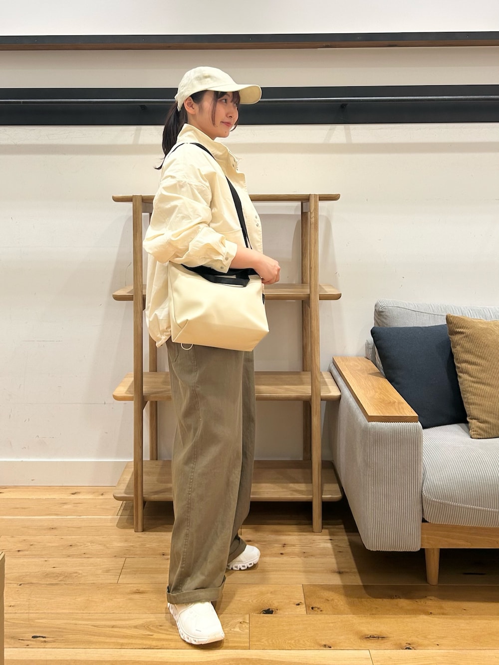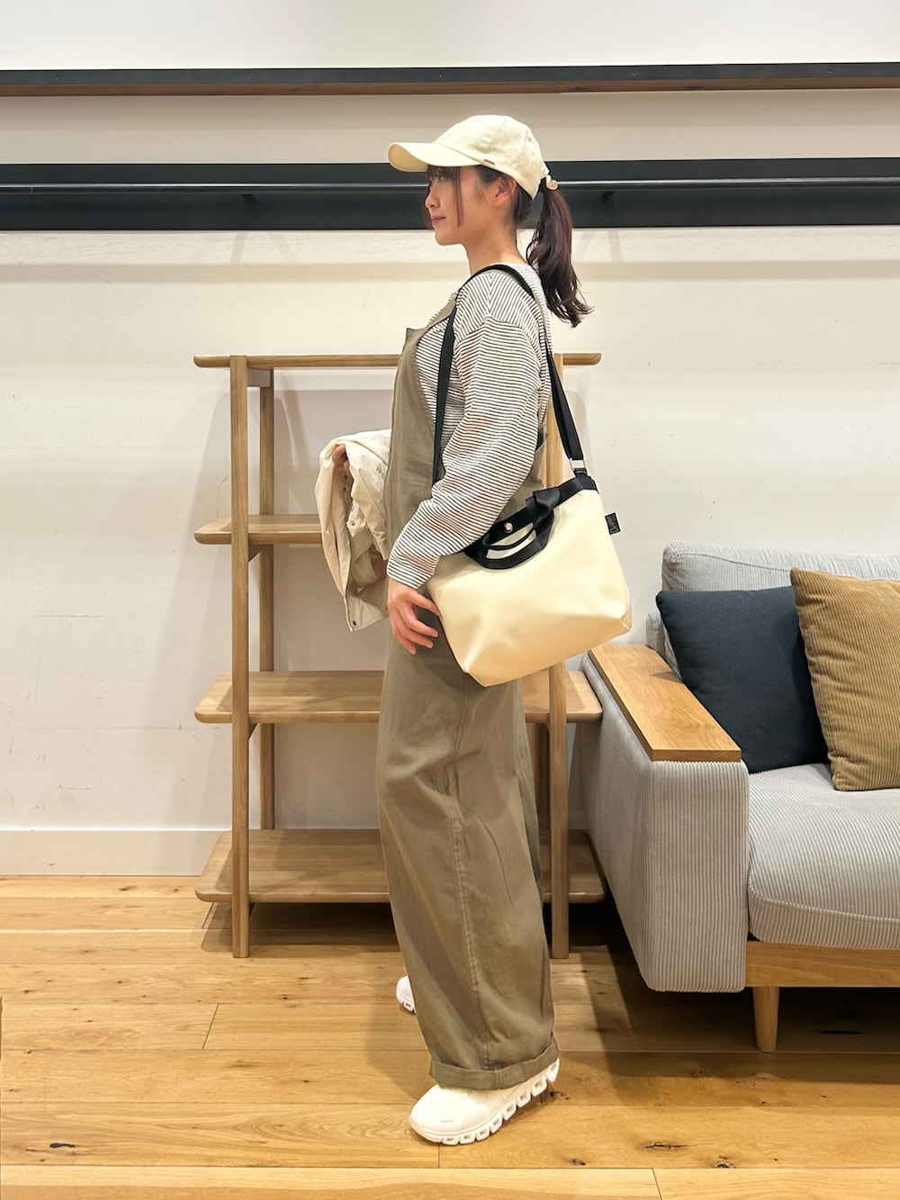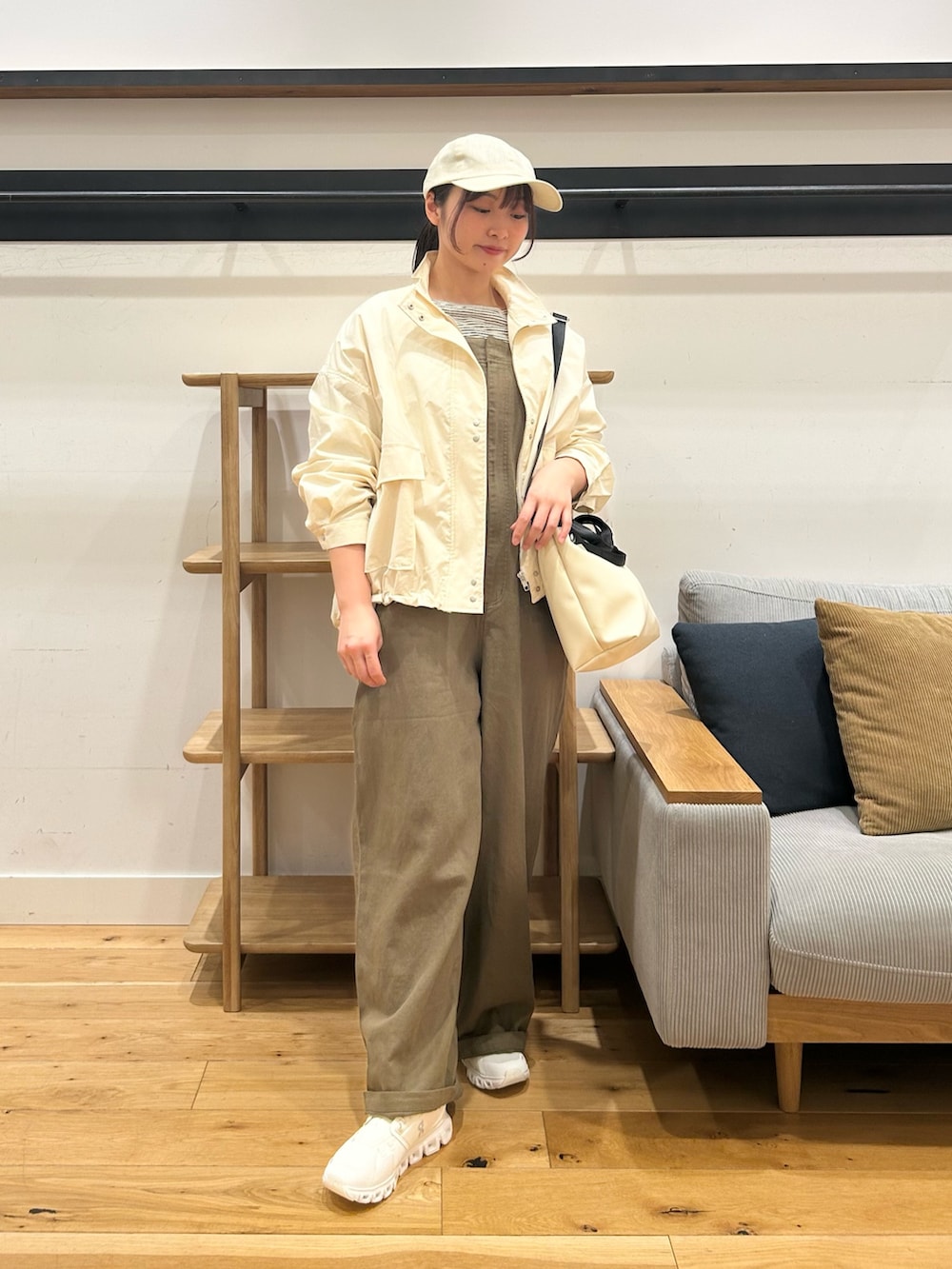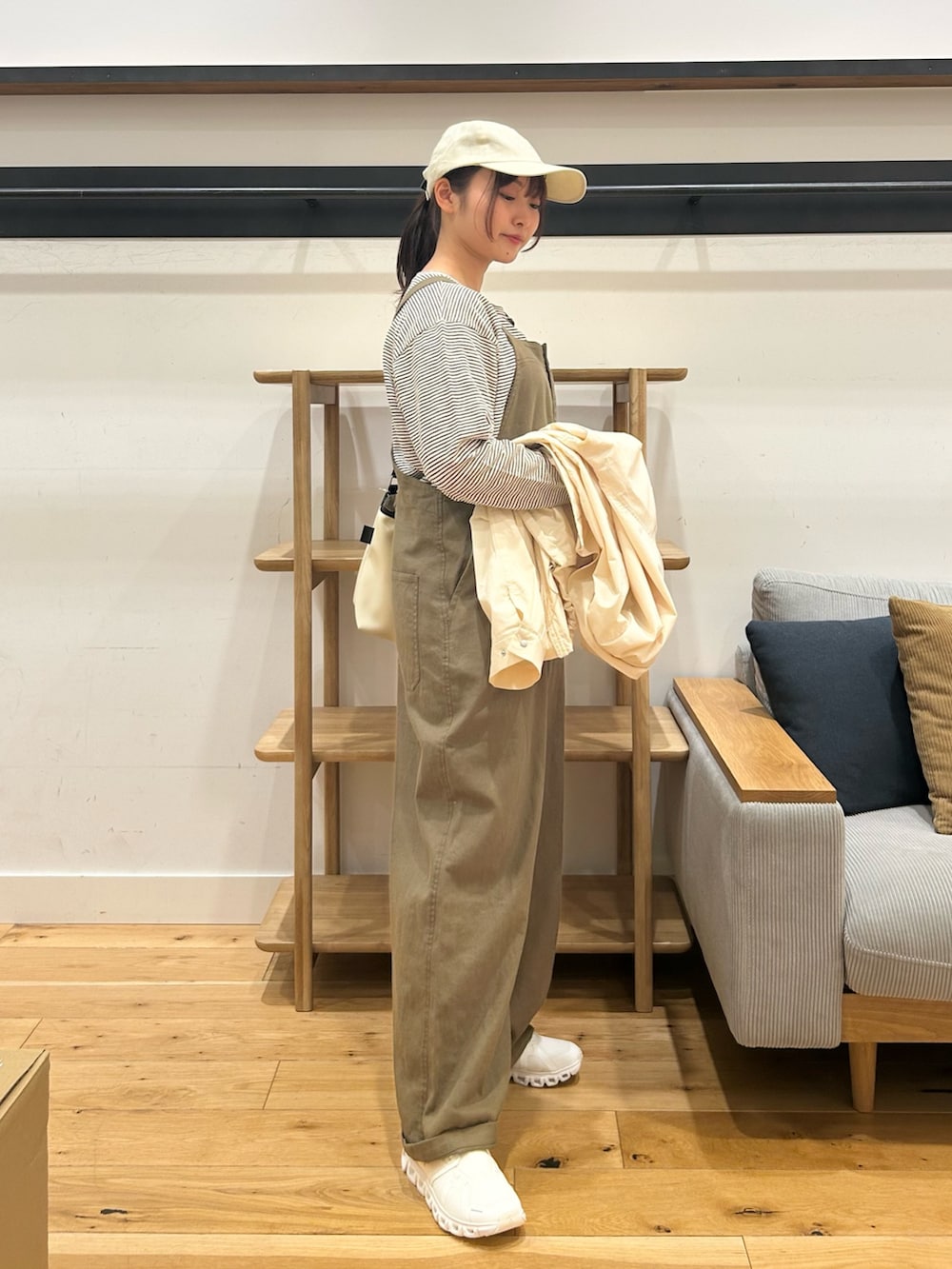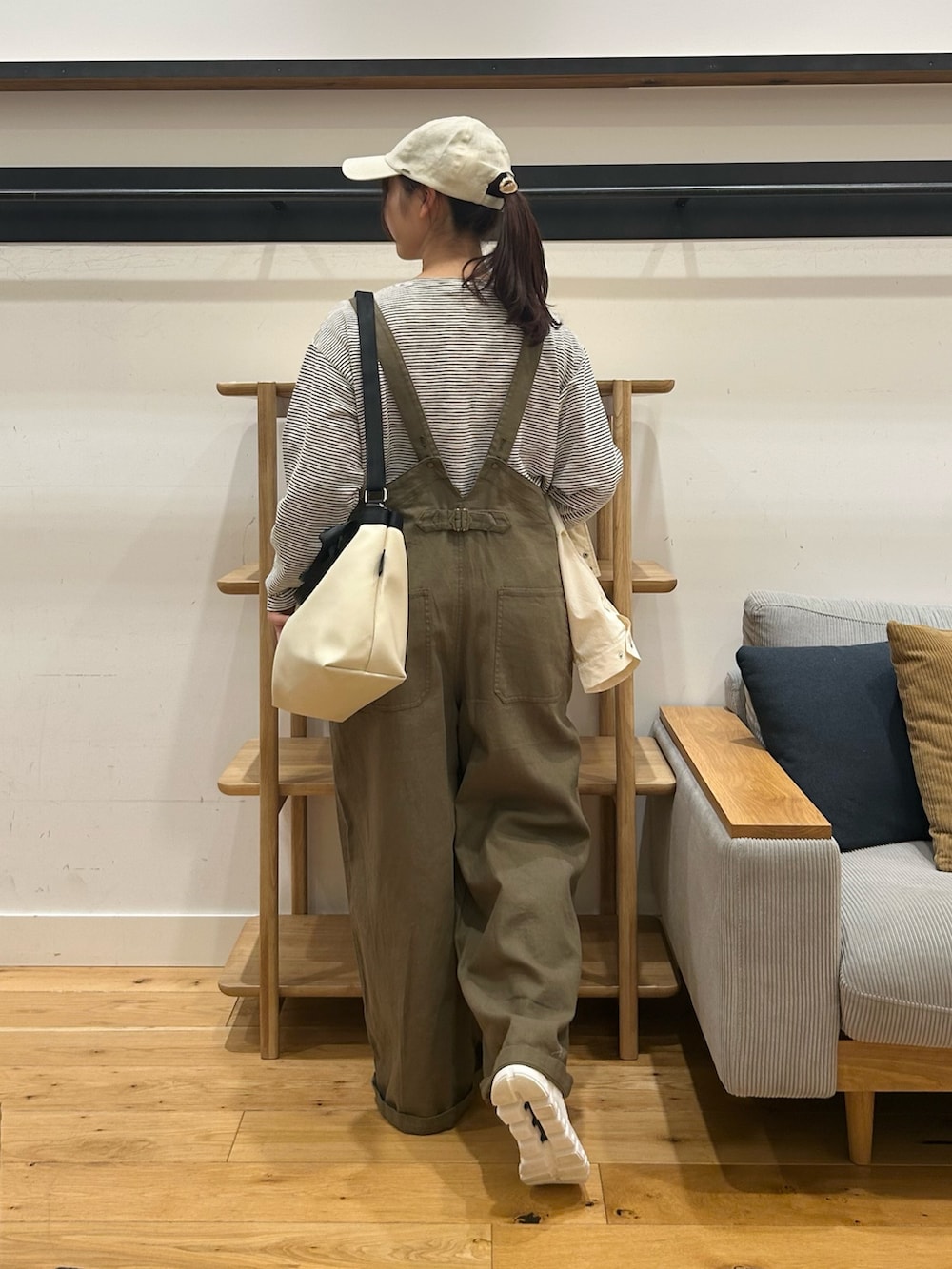 ハリの少ない生地のおかげでゆるっと抜け感が出て大人っぽくサロペットを楽しめるアイテムです。プライベートでもSサイズを愛用しているリアルバイアイテムです✨Mだと一折りで裾がちょうど、Sだと折らずに穿けます。後ろのVカットのデザインも、さりげなくスリムに見せてくれるポイントです!