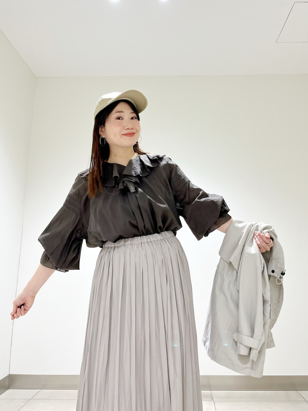 お袖がふんわりしていて、胸元のフリルデザインも可愛いブラウスです☆