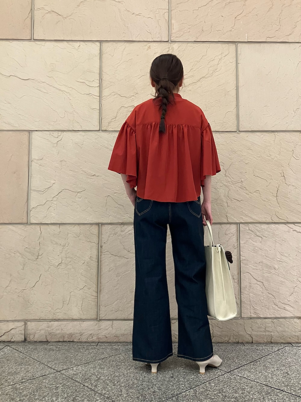 リネン混のブラウスはUVカット機能があり真夏の暑い日でも安心してお出かけできます!袖は肘が隠れるくらいまであり二の腕もカバーしてくれます◎