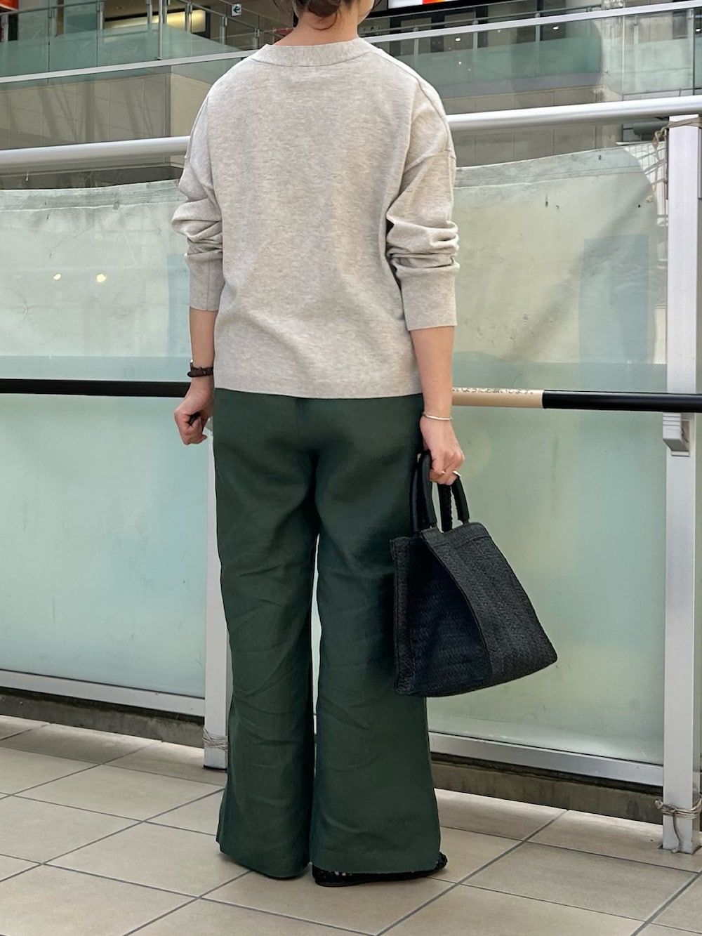 リネンのパンツは太すぎないので小柄な方にもオススメです。